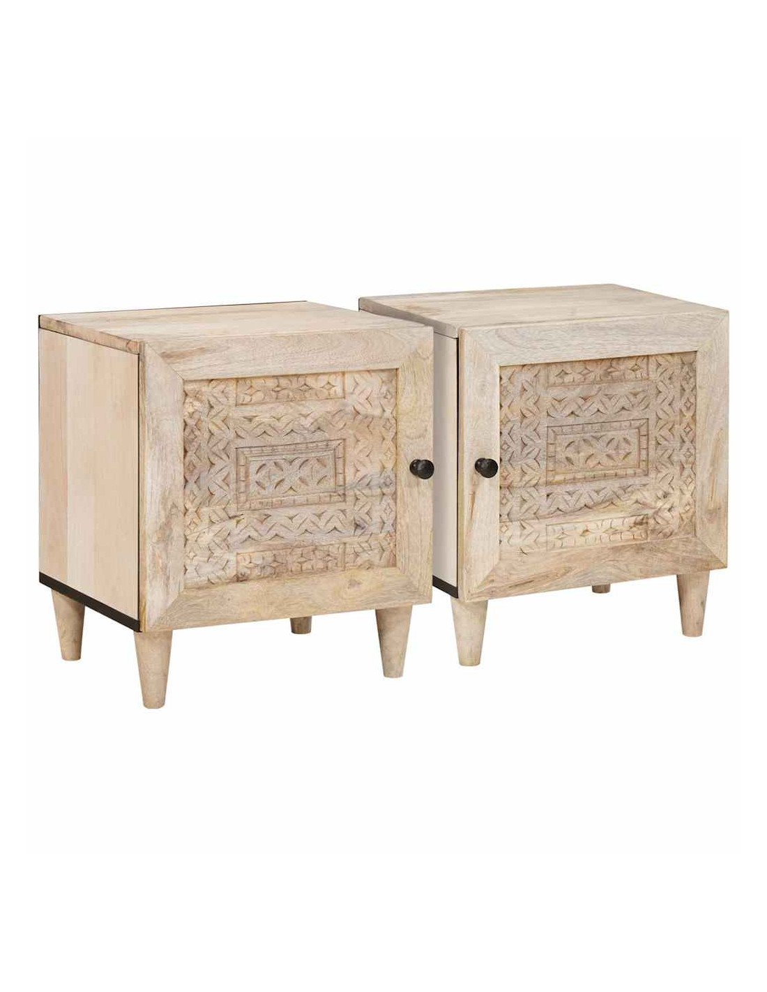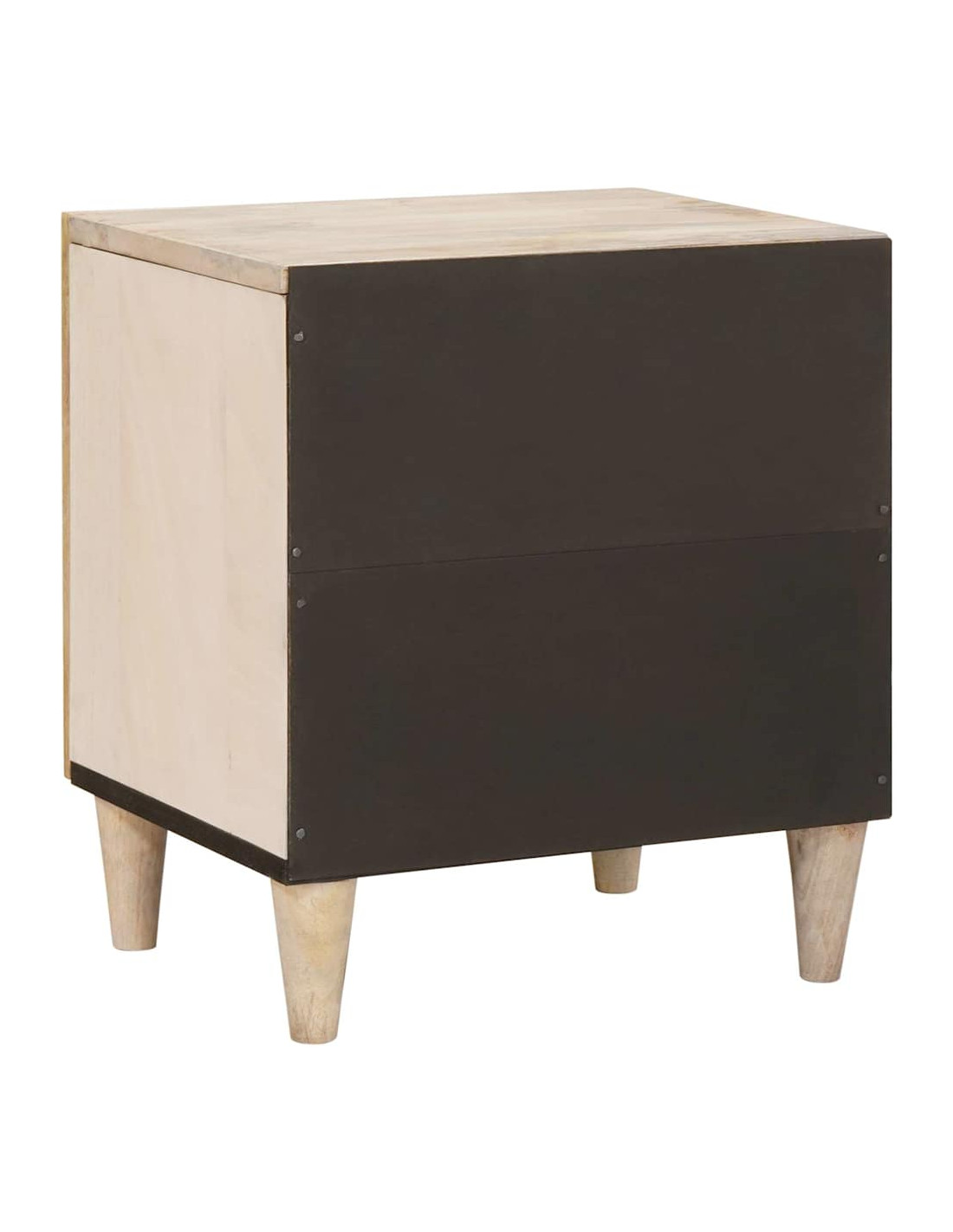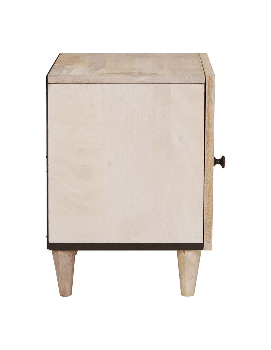 Questo comodino rustico è un ottimo mix di praticità e stile, perfetto per il soggiorno o la camera da letto. Realizzato in legno massello di mango, ha una finitura calda e testurizzata che dà carattere al tuo spazio. La forma rettangolare compatta si adatta perfettamente accanto al letto, offrendo un posto comodo per la lampada, la sveglia o le tue cose.