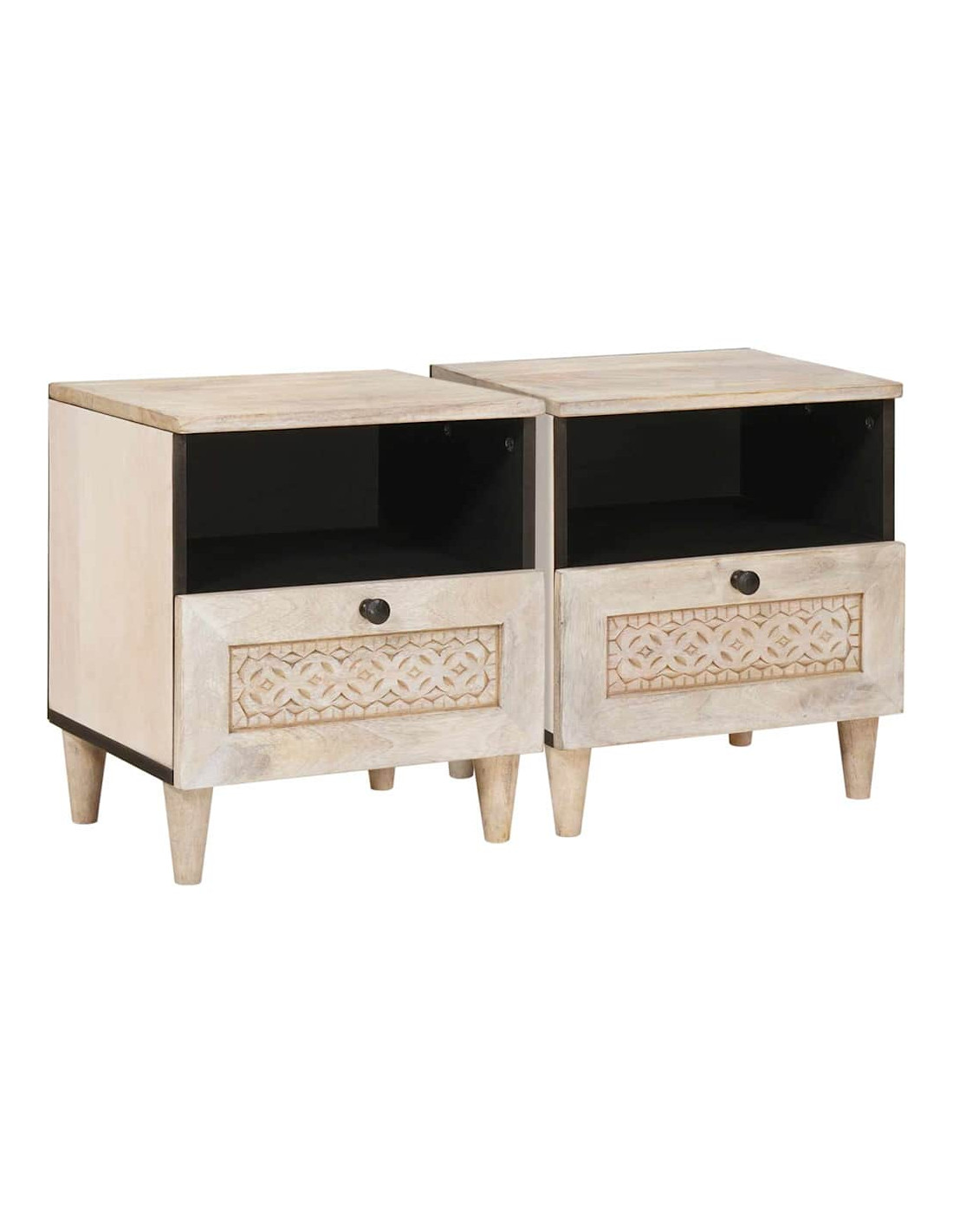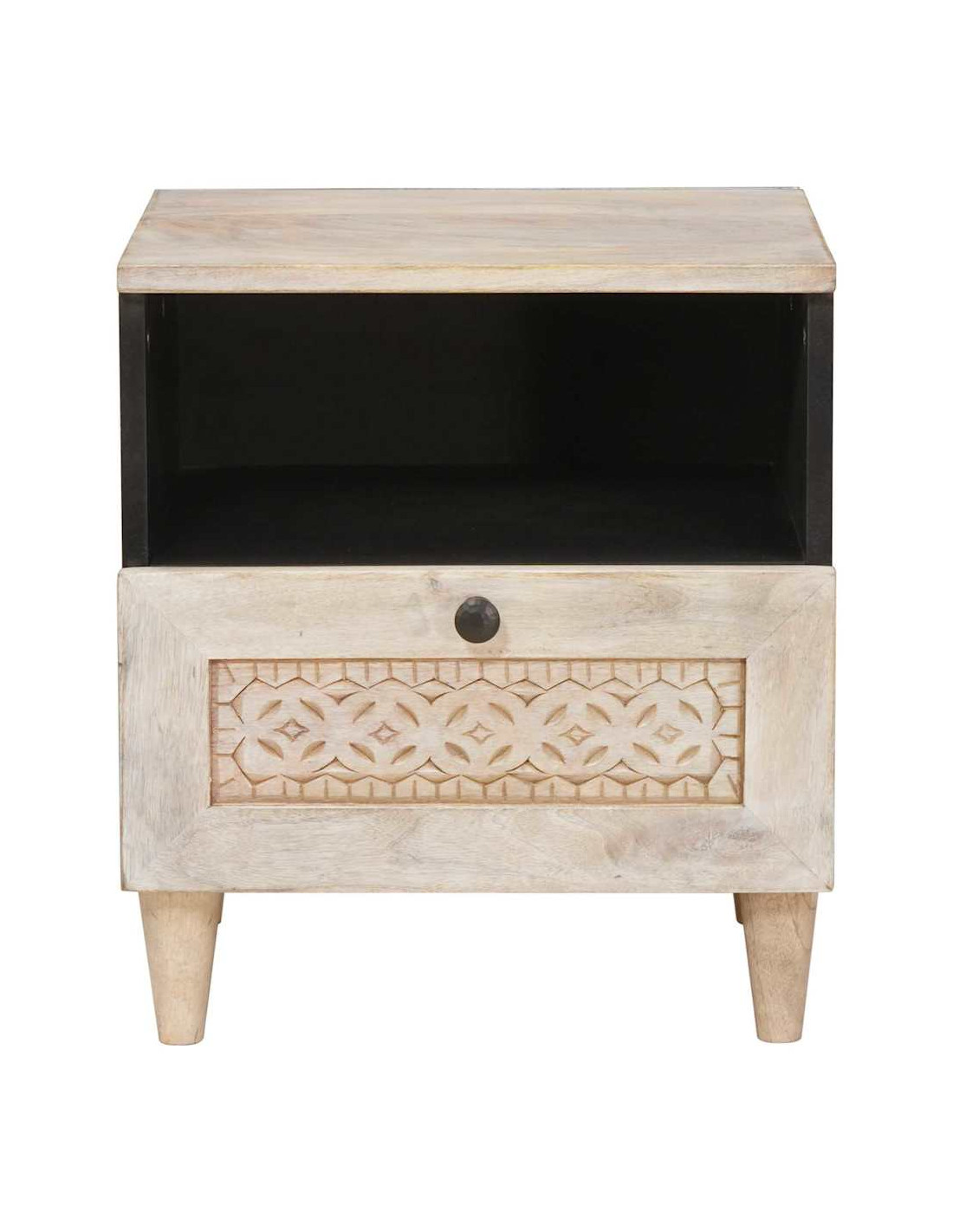 - Materiale in Legno Massello di Mango Questo tavolo è costruito con legno di mango di alta qualità, che gli dà resistenza e un bel look rustico. È noto per la sua durata, e il legno di mango mantiene questo pezzo sempre in forma anche con l'uso quotidiano. Inoltre, le venature naturali rendono ogni tavolo unico, aggiungendo carattere al tuo spazio. È robusto abbastanza da tenere tutti i tuoi must-have da comodino.