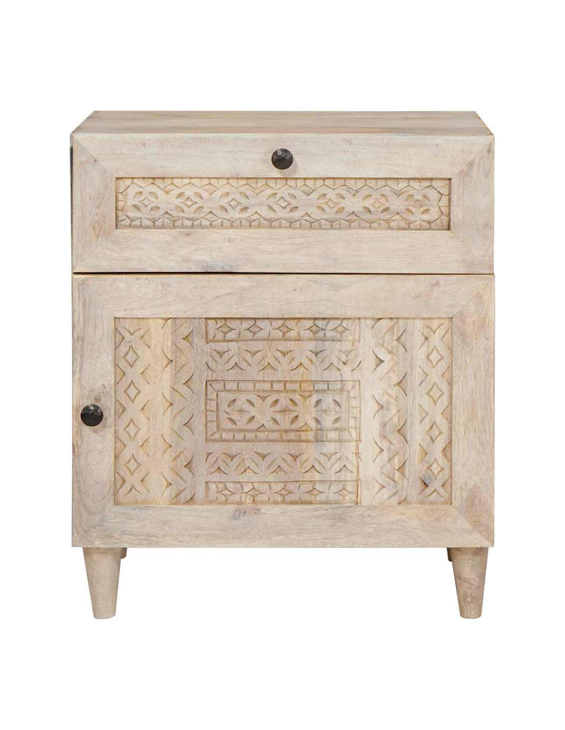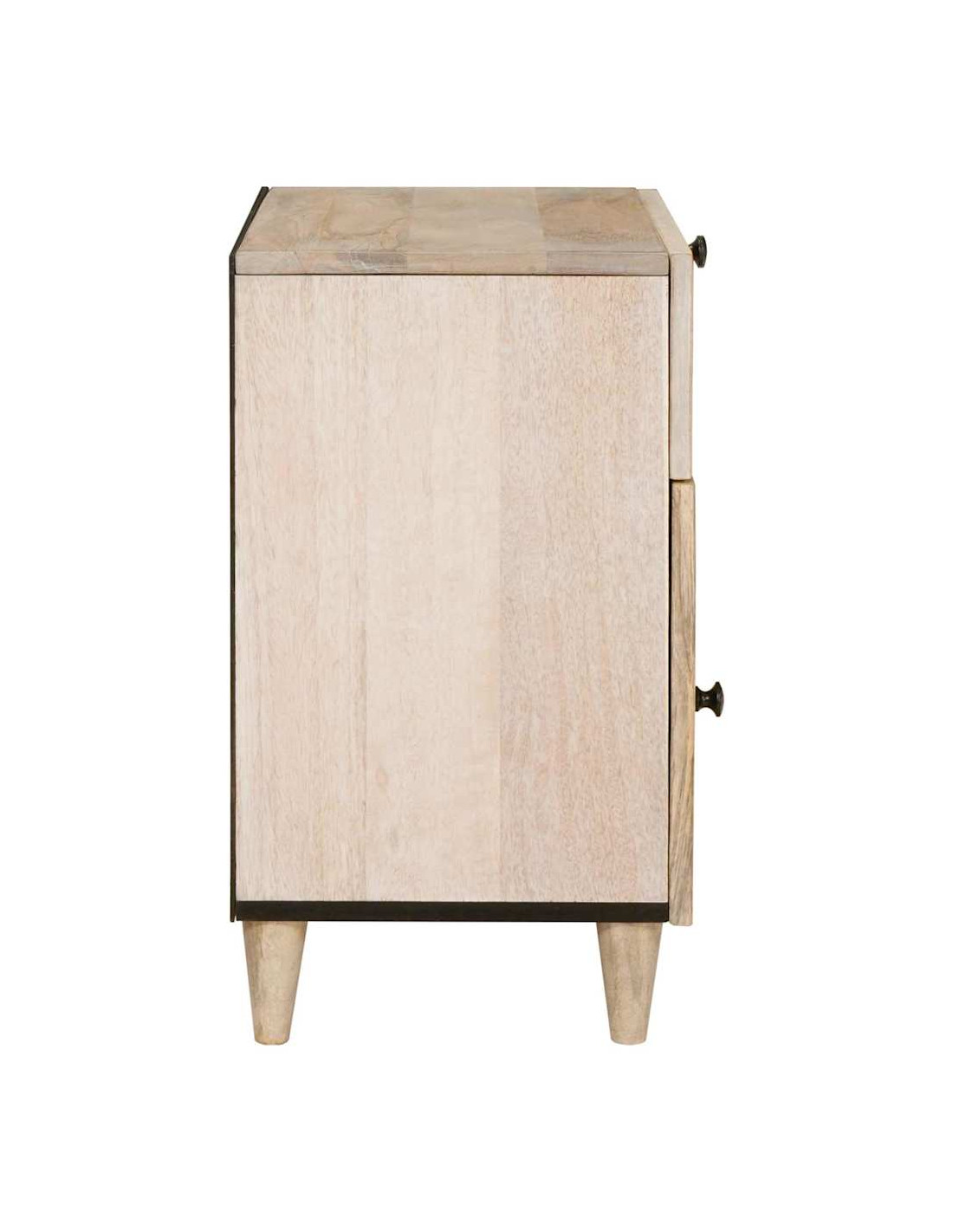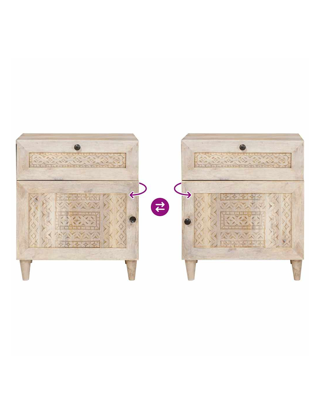 - Costruzione in Legno Massello di Mango Questo comodino è fatto di legno massello di mango, noto per la sua robustezza e durata. Il suo aspetto naturale gli dà un fascino senza tempo e la superficie liscia aggiunge un tocco di eleganza, assicurando che resista alla prova del tempo. Puoi contare su di lui come un buon investimento che porta eleganza e calore nel tuo spazio.