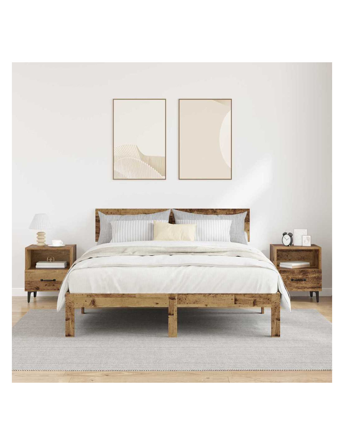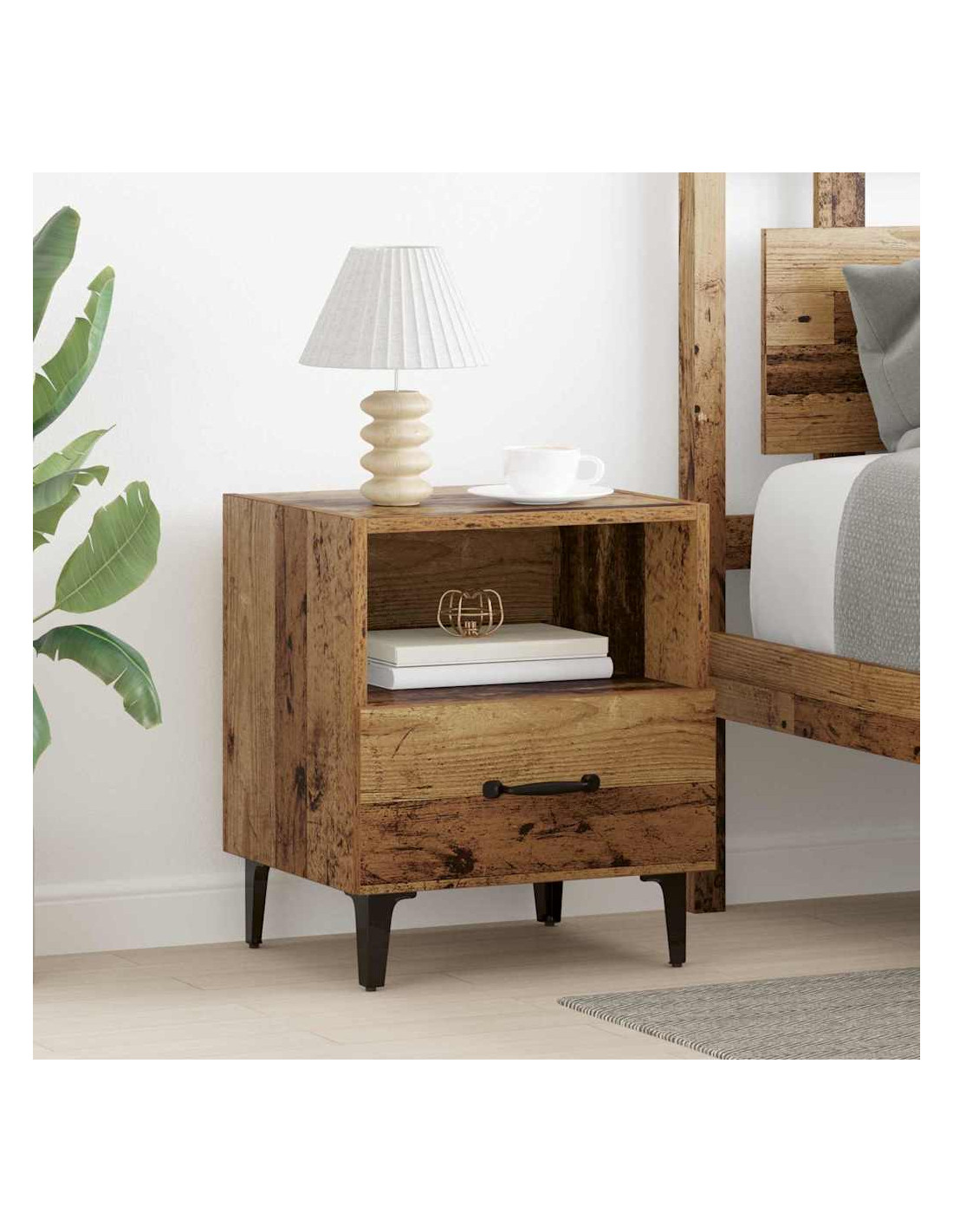 - Costruzione in Legno Ingegnerizzato Il comodino è realizzato in legno ingegnerizzato robusto, noto per la sua durata e resistenza allo sbiadimento. Questo aumenta la sua vita e mantiene il suo aspetto in ottime condizioni anche in spazi molto utilizzati.