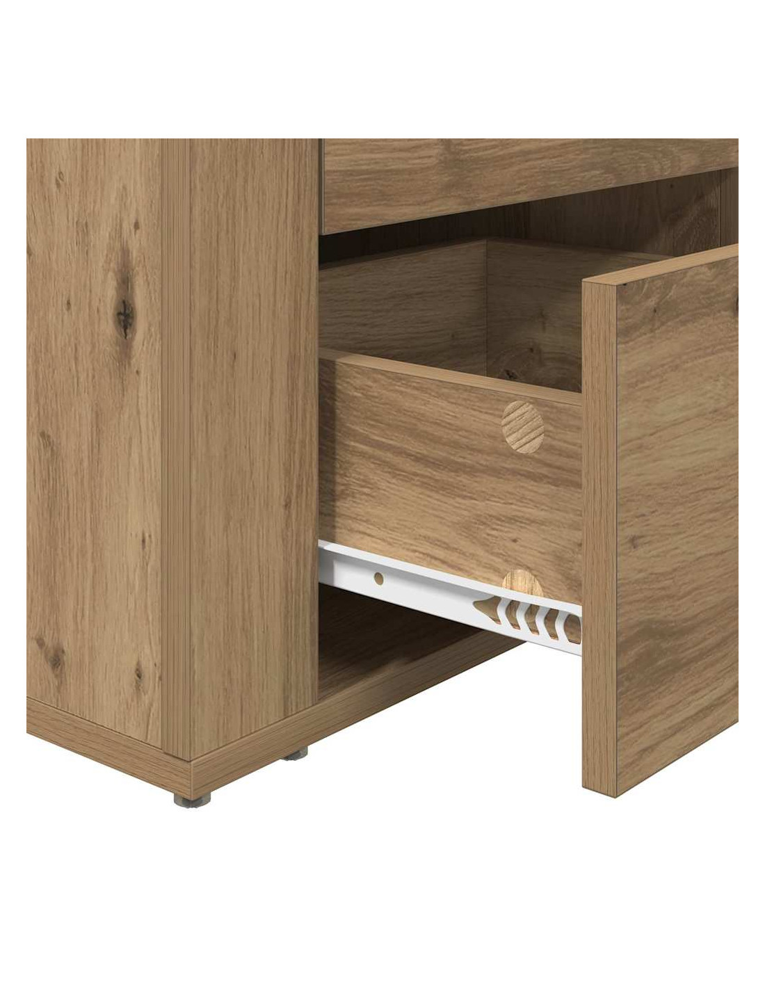 - Struttura Robusta: Fatto in legno ingegnerizzato di alta qualità, questo comodino è resistente e ha un bel design. È pensato per durare e ottimo per l'uso quotidiano.
