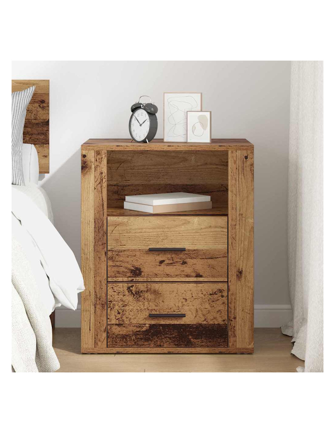 - Composizione in legno ingegnerizzato: Questo mobile è fatto in legno ingegnerizzato, noto per la sua robustezza. Ha una texture uniforme e resiste all'usura di tutti i giorni, garantendo durata. La sua superficie liscia dona un'elegante finitura opaca, rendendolo un'aggiunta senza tempo alla tua stanza.