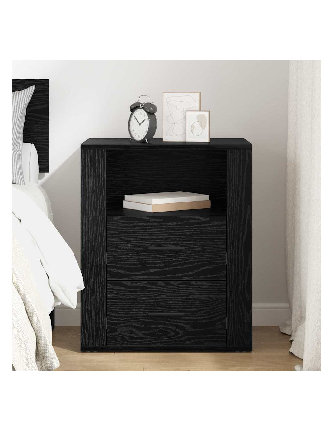 - Composizione in legno ingegnerizzato: Questo mobile è fatto in legno ingegnerizzato, noto per la sua robustezza. Ha una texture uniforme e resiste all'usura di tutti i giorni, garantendo durata. La sua superficie liscia dona un'elegante finitura opaca, rendendolo un'aggiunta senza tempo alla tua stanza.