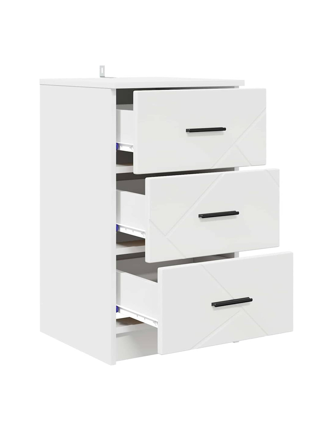 - Maniglie Metalliche: Le maniglie metallizzate del mobile da notte sono sia belle che pratiche. Queste maniglie rendono facile aprire i cassetti e danno un tocco di classe mantenendo un aspetto moderno.