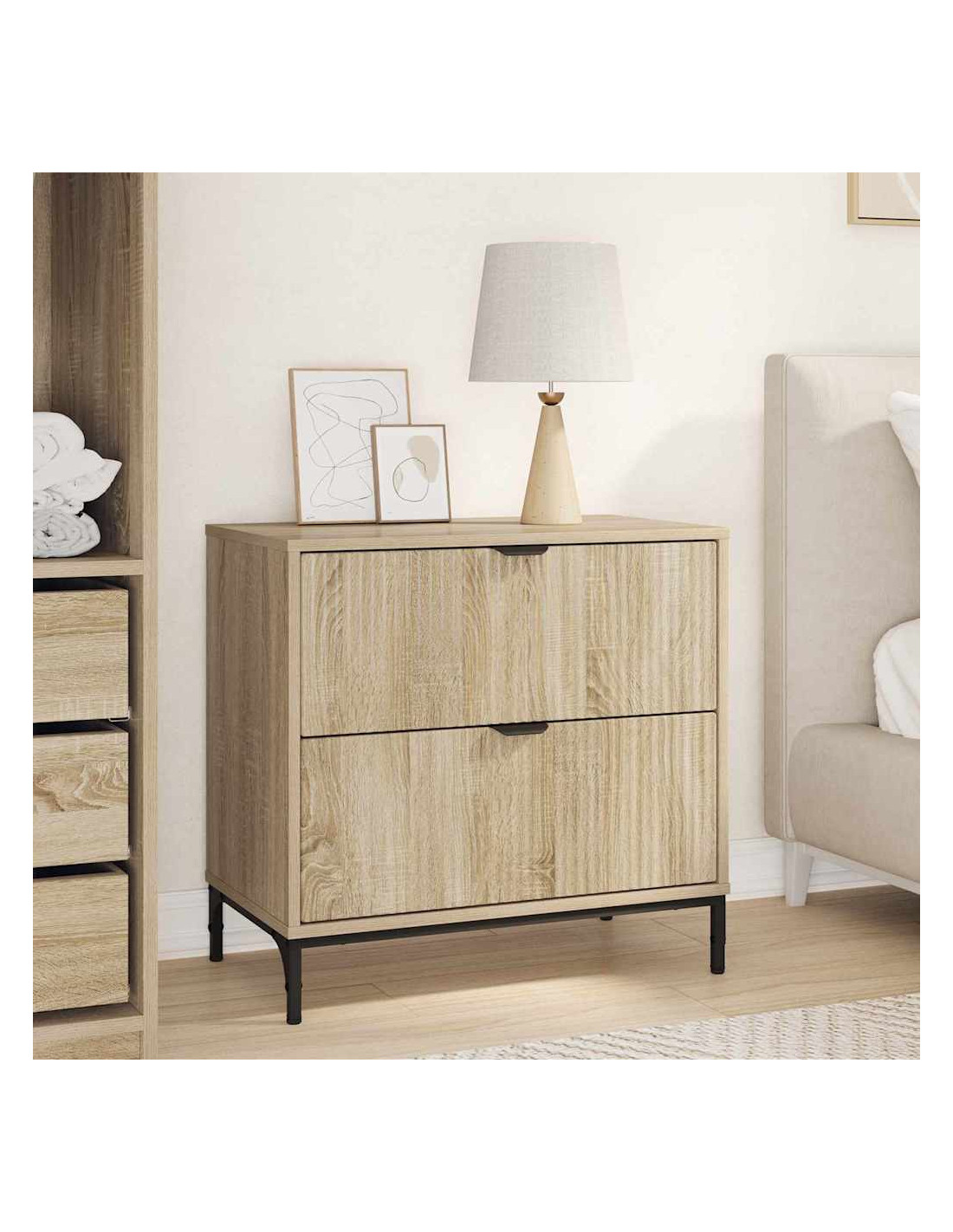 - Capacità di archiviazione ampia: Con tanti scomparti, questo comodino offre tanto spazio flessibile. Le maniglie dei cassetti hanno un aspetto pulito e sono super facili da usare. C’è tantissimo spazio per i tuoi libri, gadget o oggetti personali, così tutto rimane in ordine.