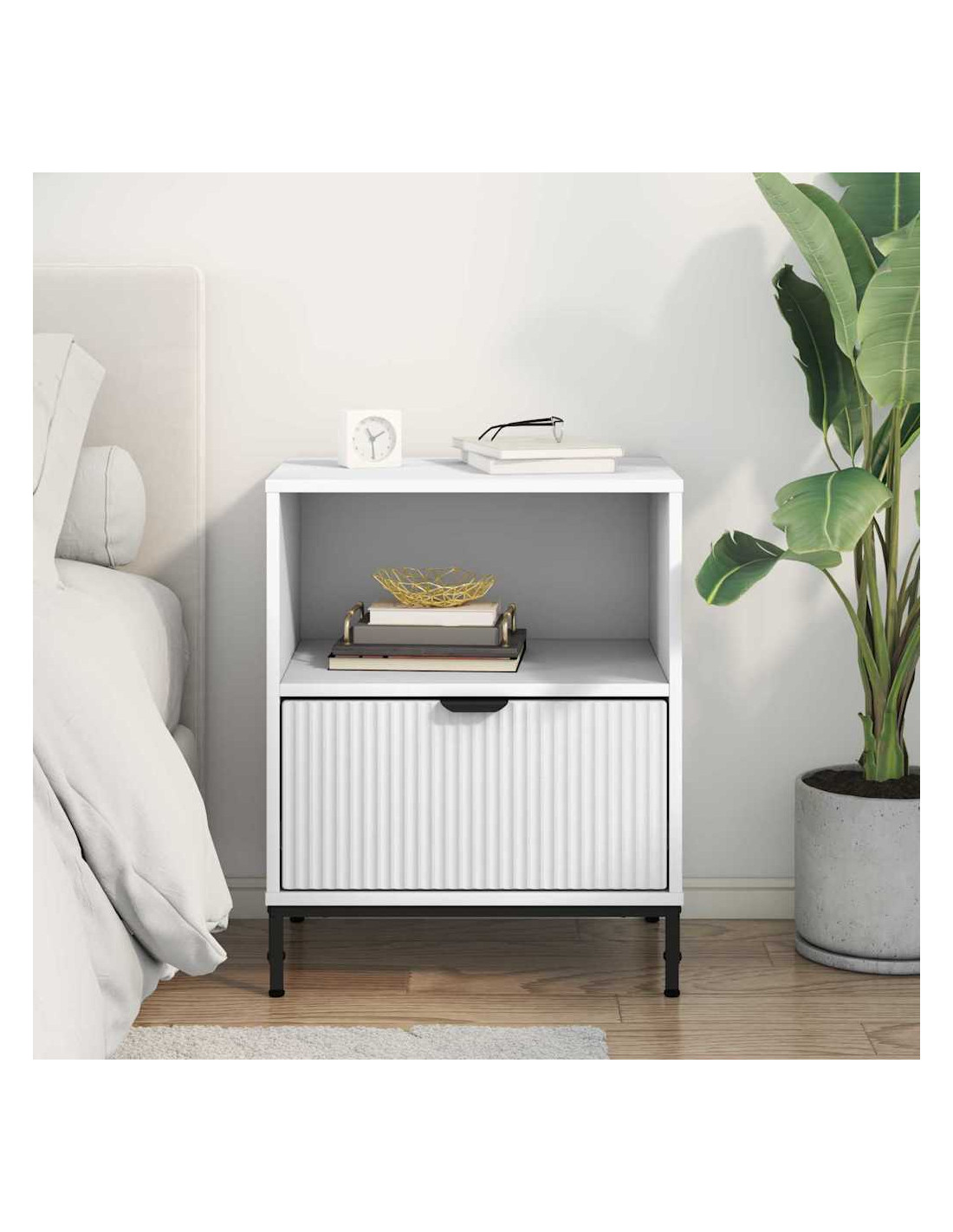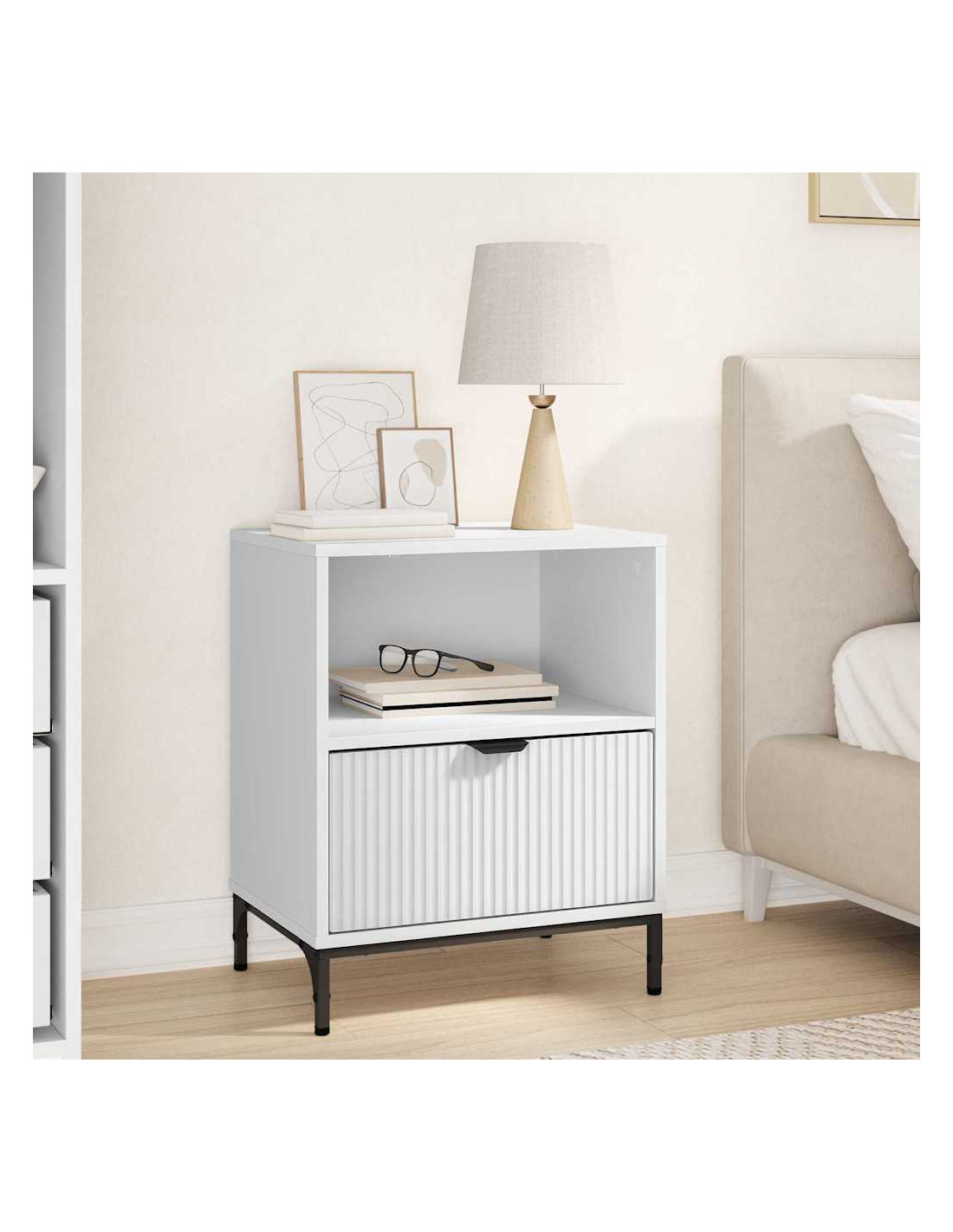 - Materiale di Costruzione: Questo comodino è fatto di legno ingegnerizzato di alta qualità, che offre una superficie liscia e stabilità duratura. Le gambe in acciaio forniscono un supporto solido, è pratico e con stile.