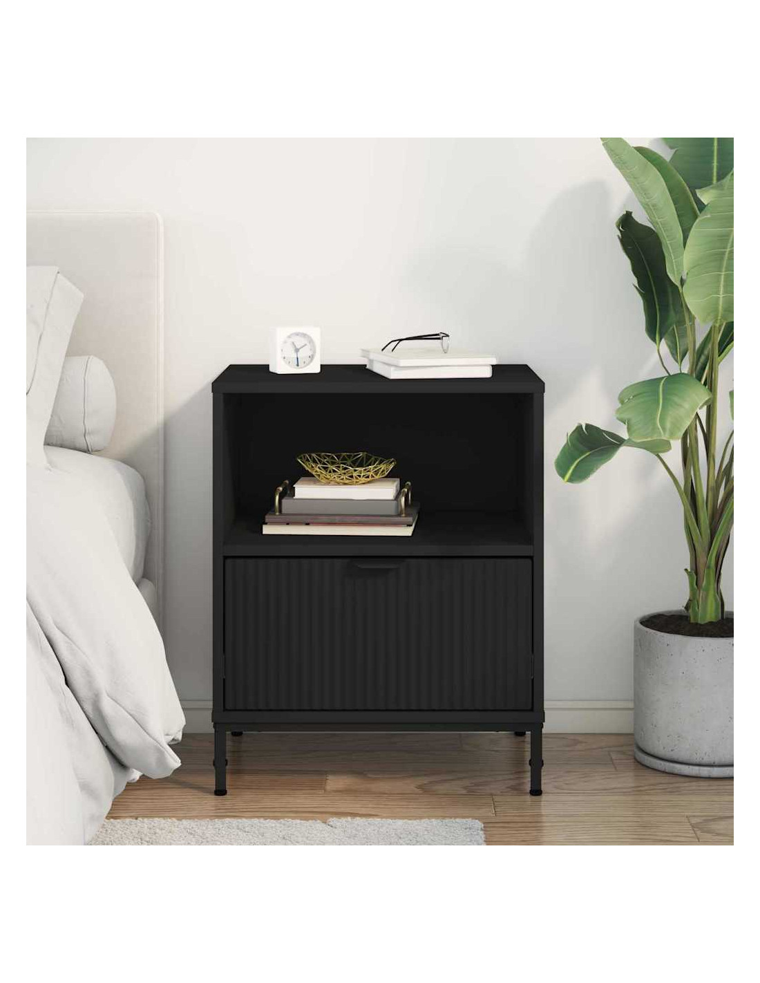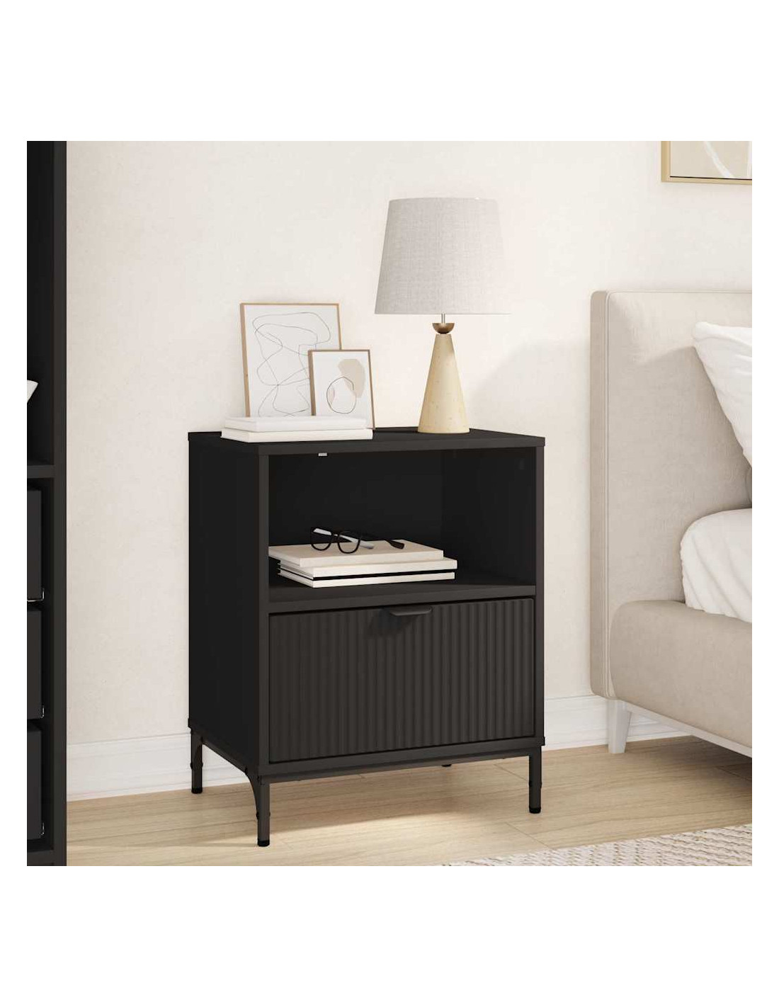 - Materiale di Costruzione: Questo comodino è fatto di legno ingegnerizzato di alta qualità, che offre una superficie liscia e stabilità duratura. Le gambe in acciaio forniscono un supporto solido, è pratico e con stile.