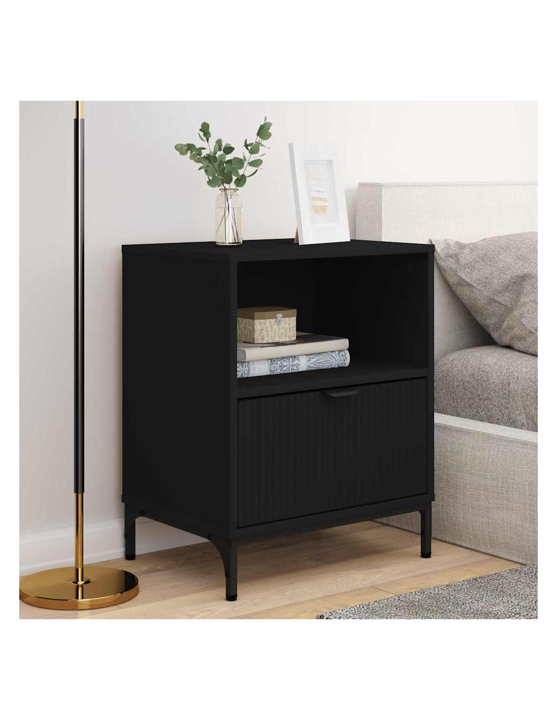 - Materiale di Costruzione: Questo comodino è fatto di legno ingegnerizzato di alta qualità, che offre una superficie liscia e stabilità duratura. Le gambe in acciaio forniscono un supporto solido, è pratico e con stile.
