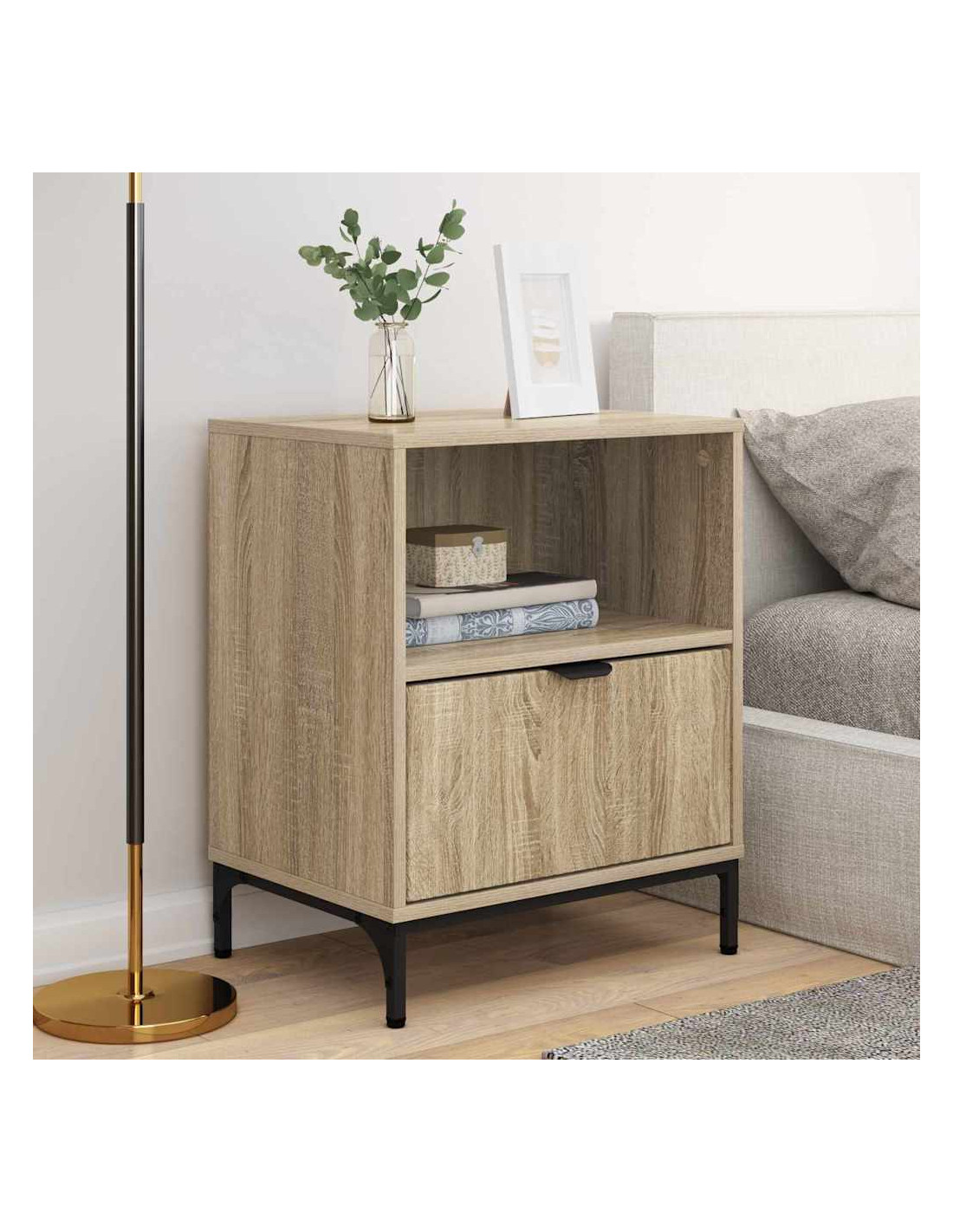 - Materiale di Costruzione: Questo comodino è fatto di legno ingegnerizzato di alta qualità, che offre una superficie liscia e stabilità duratura. Le gambe in acciaio forniscono un supporto solido, è pratico e con stile.