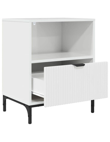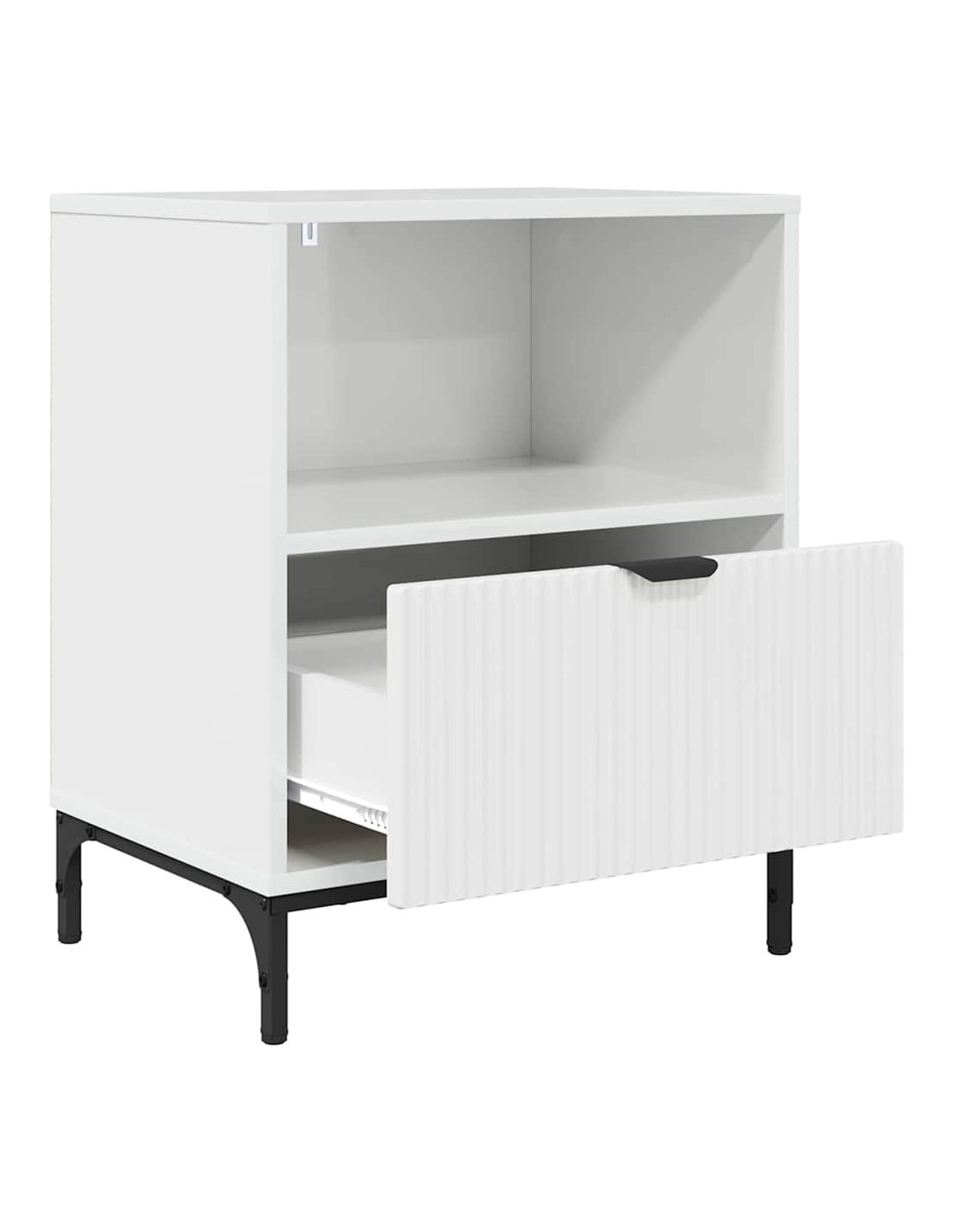 - Materiale di Costruzione: Questo comodino è fatto di legno ingegnerizzato di alta qualità, che offre una superficie liscia e stabilità duratura. Le gambe in acciaio forniscono un supporto solido, è pratico e con stile.