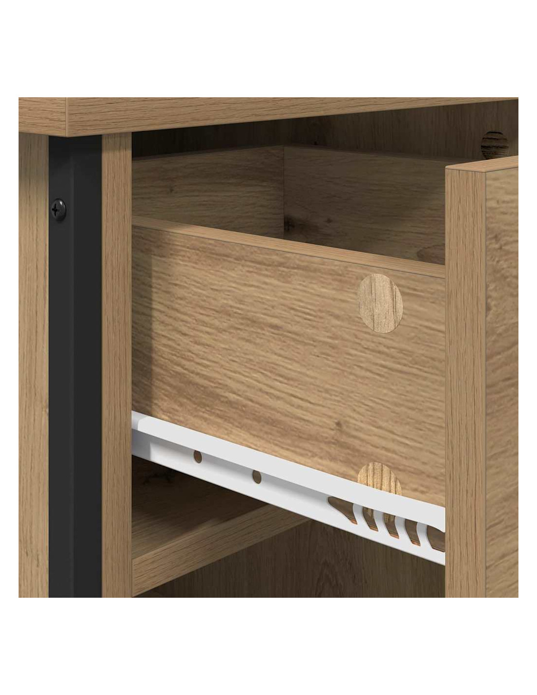 - Opzioni di Archiviazione Versatili Ha ripiani che offrono soluzioni di archiviazione intelligenti. Puoi riporre qualsiasi cosa, dai libri agli oggetti personali, assicurandoti che tutto abbia il suo posto. I ripiani in legno ingegnerizzato garantiscono stabilità e aggiungono un tocco curato all'uso quotidiano dei mobili.