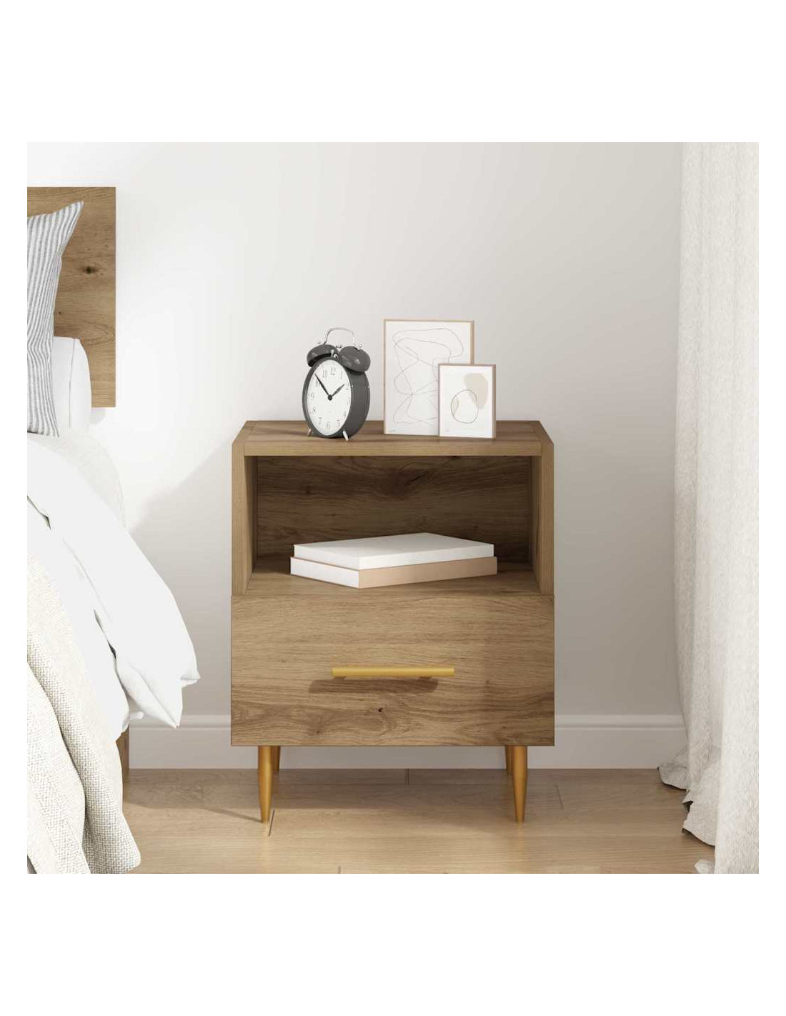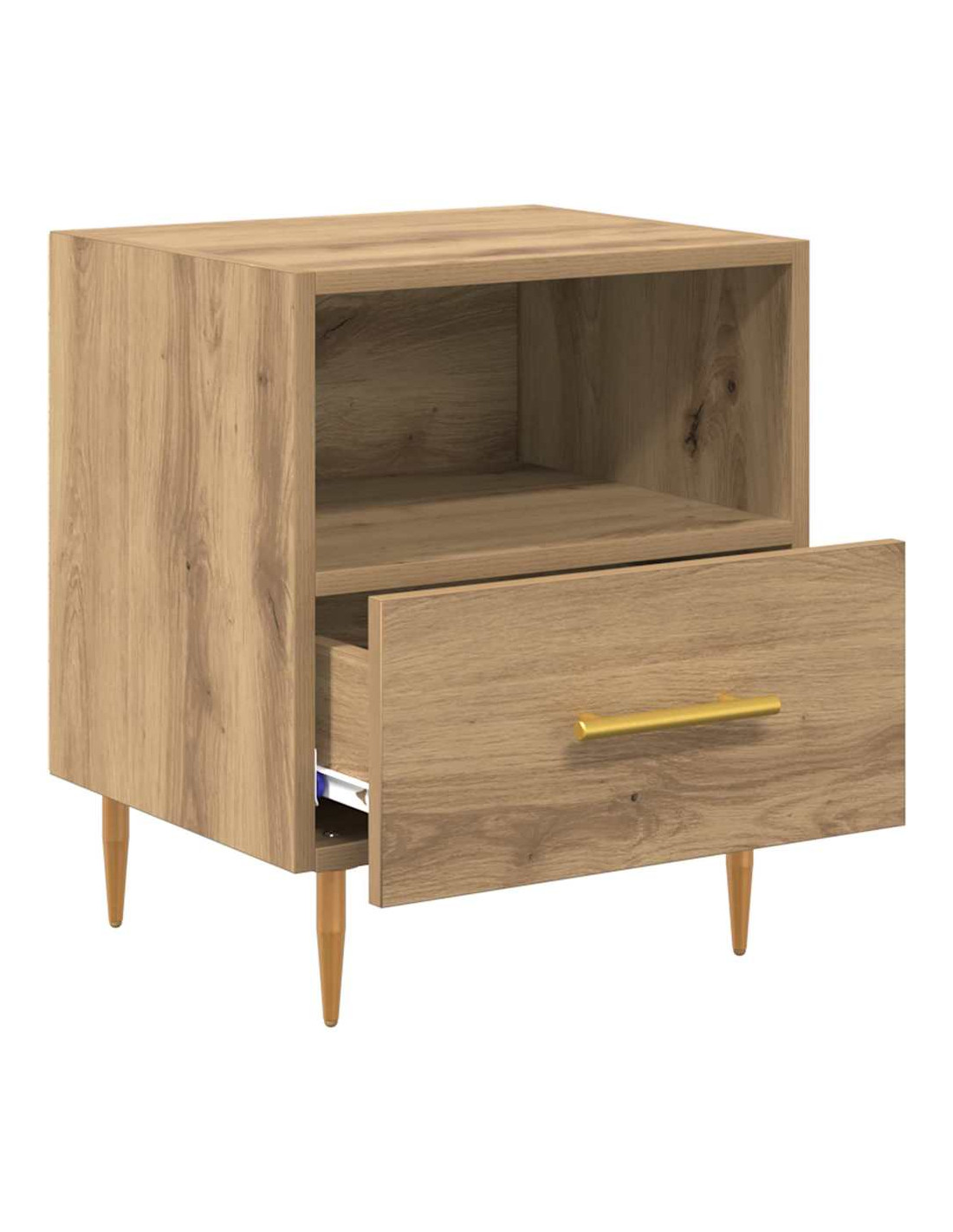 - Costruzione in Legno Ingegnerizzato Il comodino è realizzato in legno ingegnerizzato, resistente ma elegante. Questo materiale assicura durata e una finitura liscia che sottolinea il design moderno.
