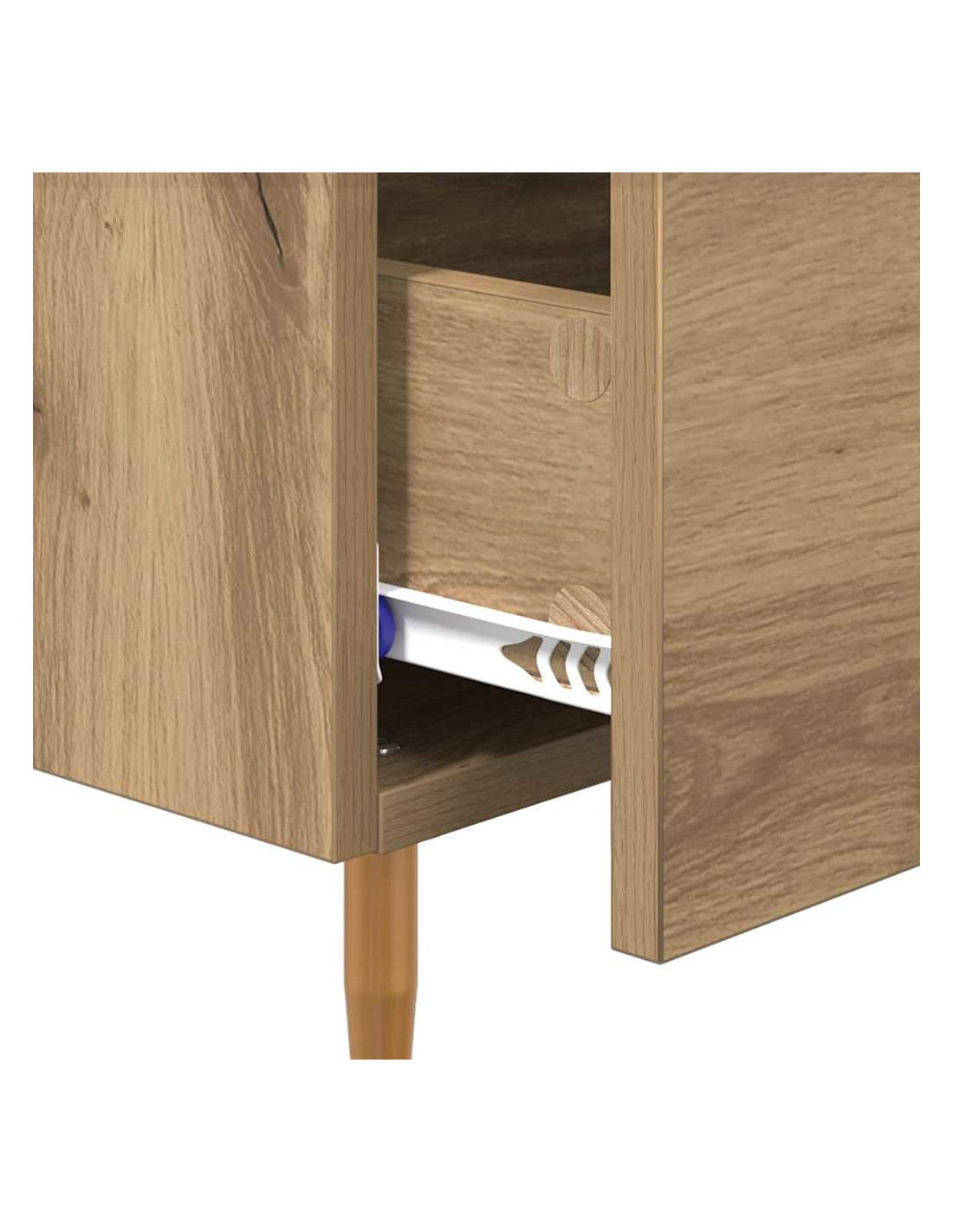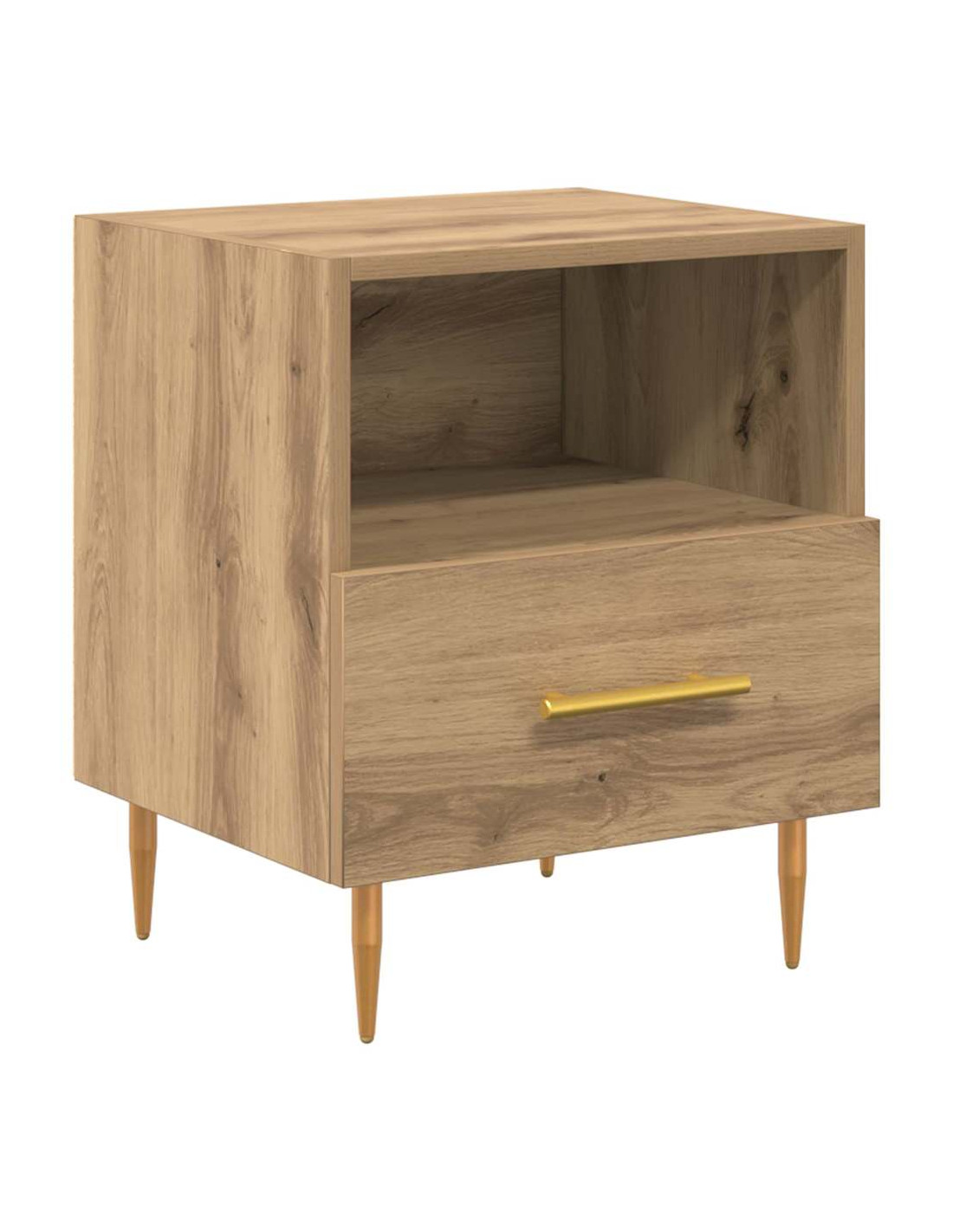 - Costruzione in Legno Ingegnerizzato Il comodino è realizzato in legno ingegnerizzato, resistente ma elegante. Questo materiale assicura durata e una finitura liscia che sottolinea il design moderno.