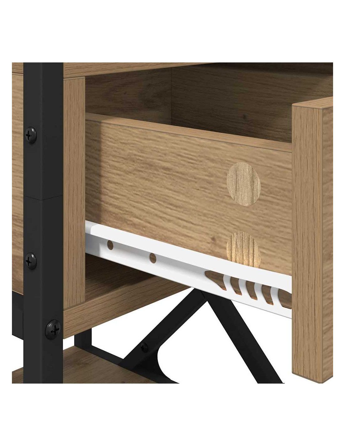 - Componenti Inclusi: Ha cassetti tradizionali e mensole in pannello per un'offerta di stoccaggio versatile. Le gambe in acciaio e il telaio in metallo verniciato a polvere supportano perfettamente la struttura.