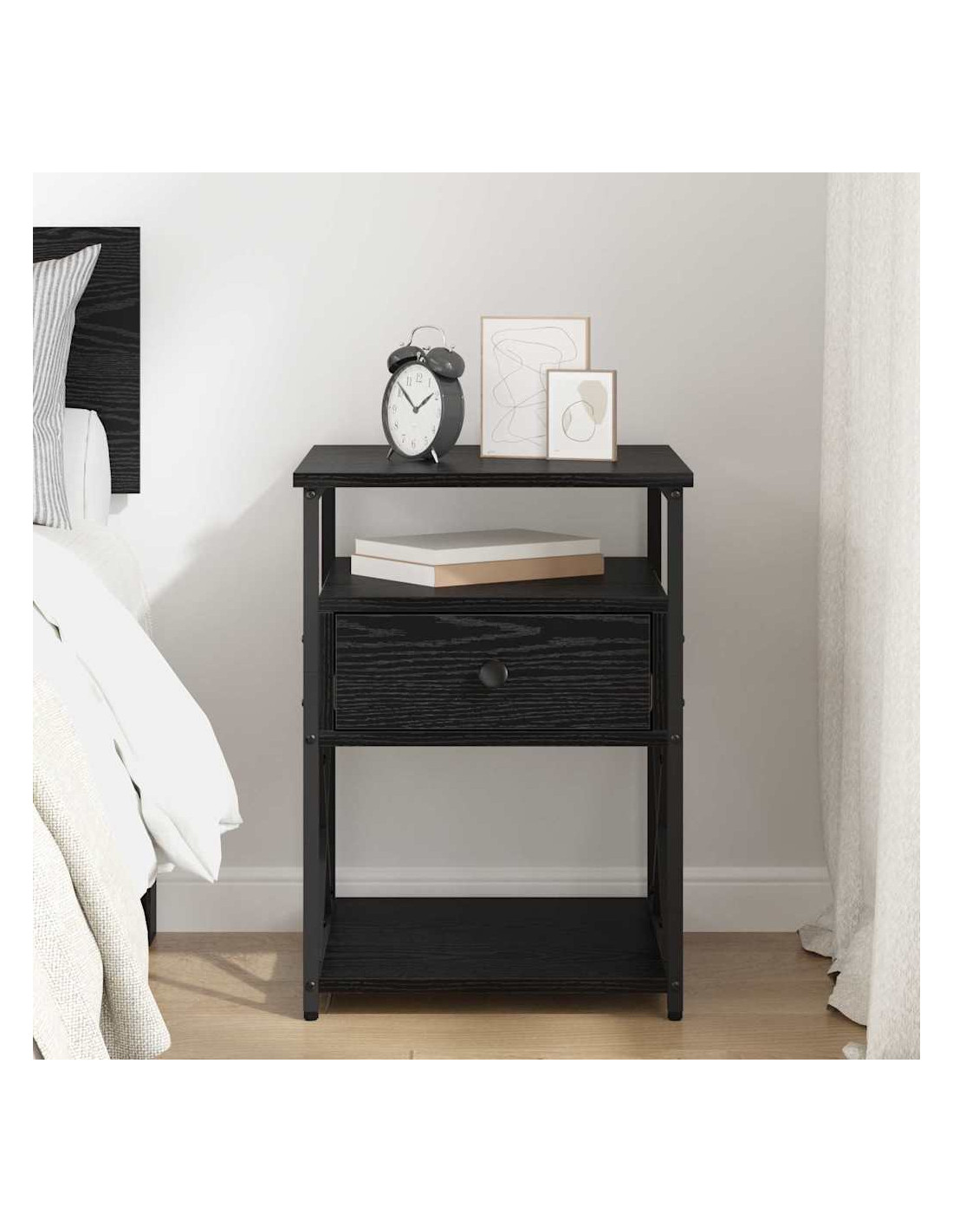Questo comodino moderno unisce stile e funzionalità in un design pratico. Perfetto per camere da letto moderne, il suo legno ingegnerizzato nero è versatile e attraente, offrendoti una soluzione chic per riporre tutto il necessario accanto al letto.