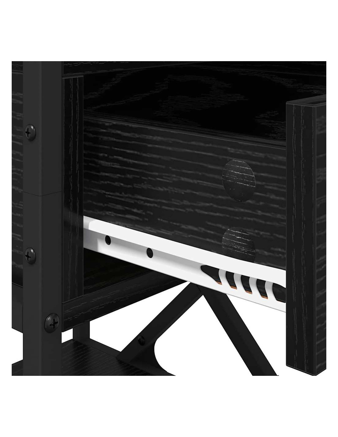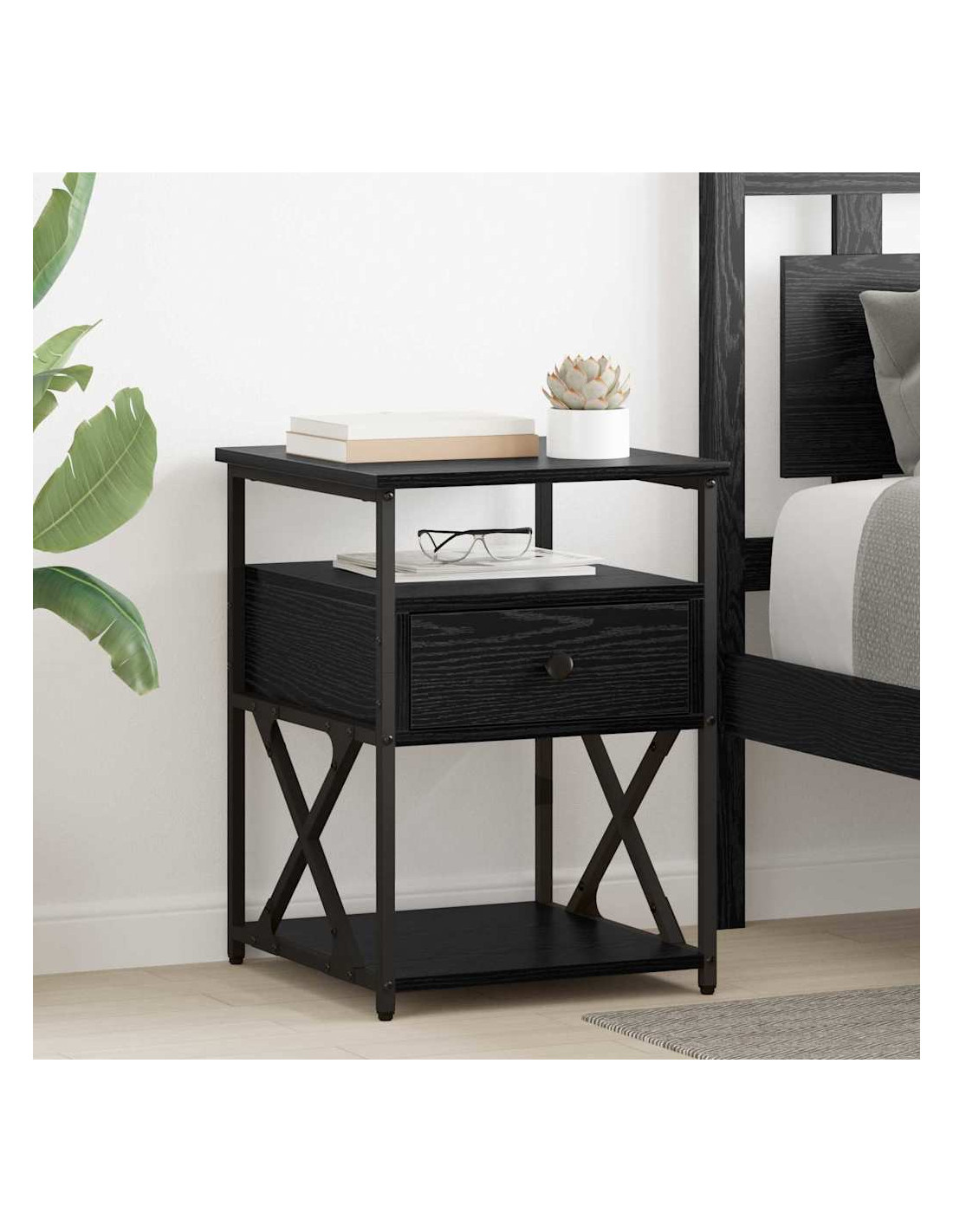 Questo comodino moderno unisce stile e funzionalità in un design pratico. Perfetto per camere da letto moderne, il suo legno ingegnerizzato nero è versatile e attraente, offrendoti una soluzione chic per riporre tutto il necessario accanto al letto.
