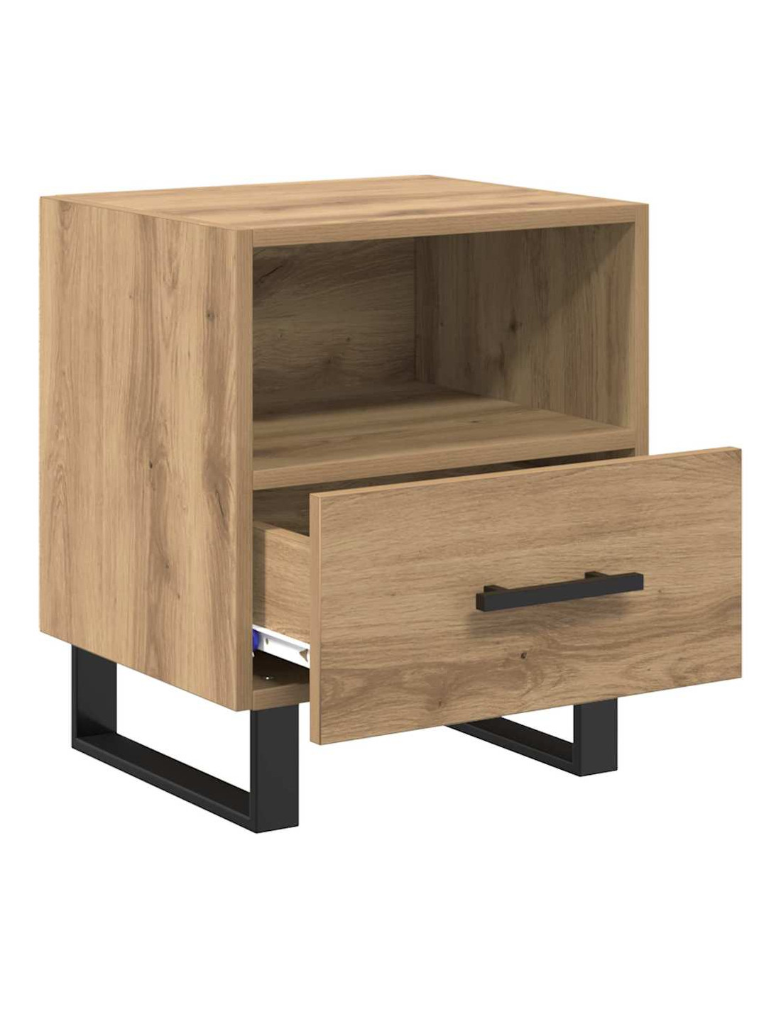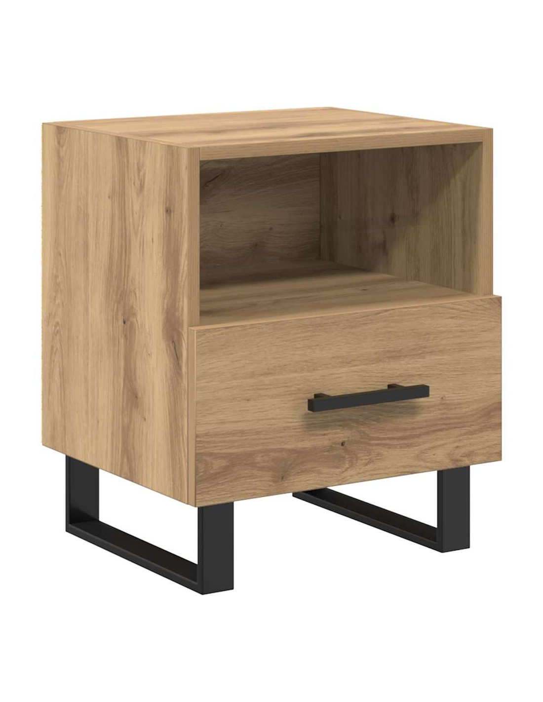 Questo comodino elegante e pratico è pensato per chi vuole un'atmosfera rustica nella propria camera da letto. Fatto di legno ingegnerizzato e con gambe quadrate in metallo nero, ha tutto ciò che serve per i tuoi essenziali notturni. È perfetto per una lampada o una sveglia e offre anche molto spazio per le tue cose personali, rendendolo un must-have per ogni camera da letto accogliente.