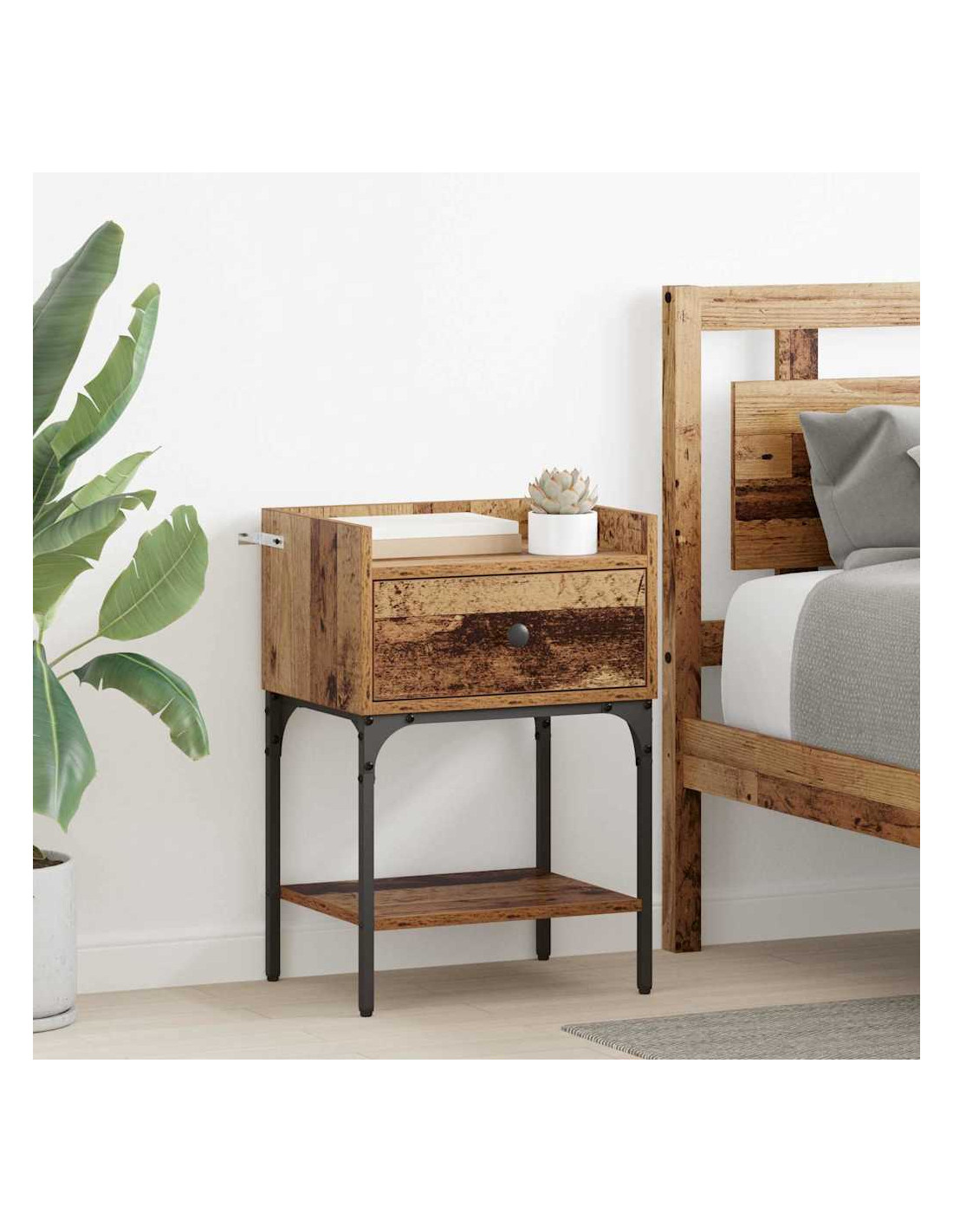 Questo comodino con cassetto è pensato per mescolare stile e praticità, perfetto per ogni tipo di camera. Ha un tocco rustico che porta un fascino naturale e robusto, mentre offre tanto spazio per i tuoi oggetti. La forma rettangolare e la finitura liscia lo rendono l'alleato ideale per ogni esigenza notturna. Inoltre, è bello e ordinato da tutti i lati, quindi si adatta bene a stili sia minimalisti che tradizionali.