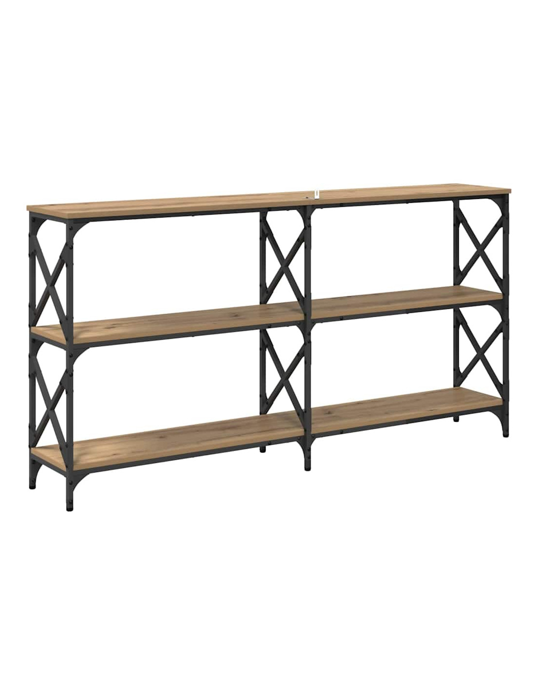 Questo tavolo consolle in legno ingegnerizzato unisce fascino rustico a un design pratico. È l'ideale per abbellire qualsiasi soggiorno. Perfetto per mostrare oggetti decorativi e dispone di ampio spazio di stoccaggio, con una superficie rettangolare e ripiani in legno ingegnerizzato. Il robusto telaio in metallo e le gambe a palo offrono un supporto sicuro, rendendolo un'ottima aggiunta a corridoi, ingressi o spazi living.