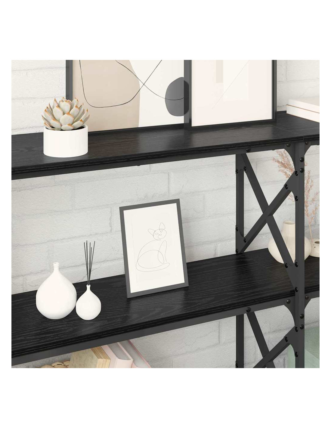 Questo tavolo consolle in legno ingegnerizzato unisce fascino rustico a un design pratico. È l'ideale per abbellire qualsiasi soggiorno. Perfetto per mostrare oggetti decorativi e dispone di ampio spazio di stoccaggio, con una superficie rettangolare e ripiani in legno ingegnerizzato. Il robusto telaio in metallo e le gambe a palo offrono un supporto sicuro, rendendolo un'ottima aggiunta a corridoi, ingressi o spazi living.
