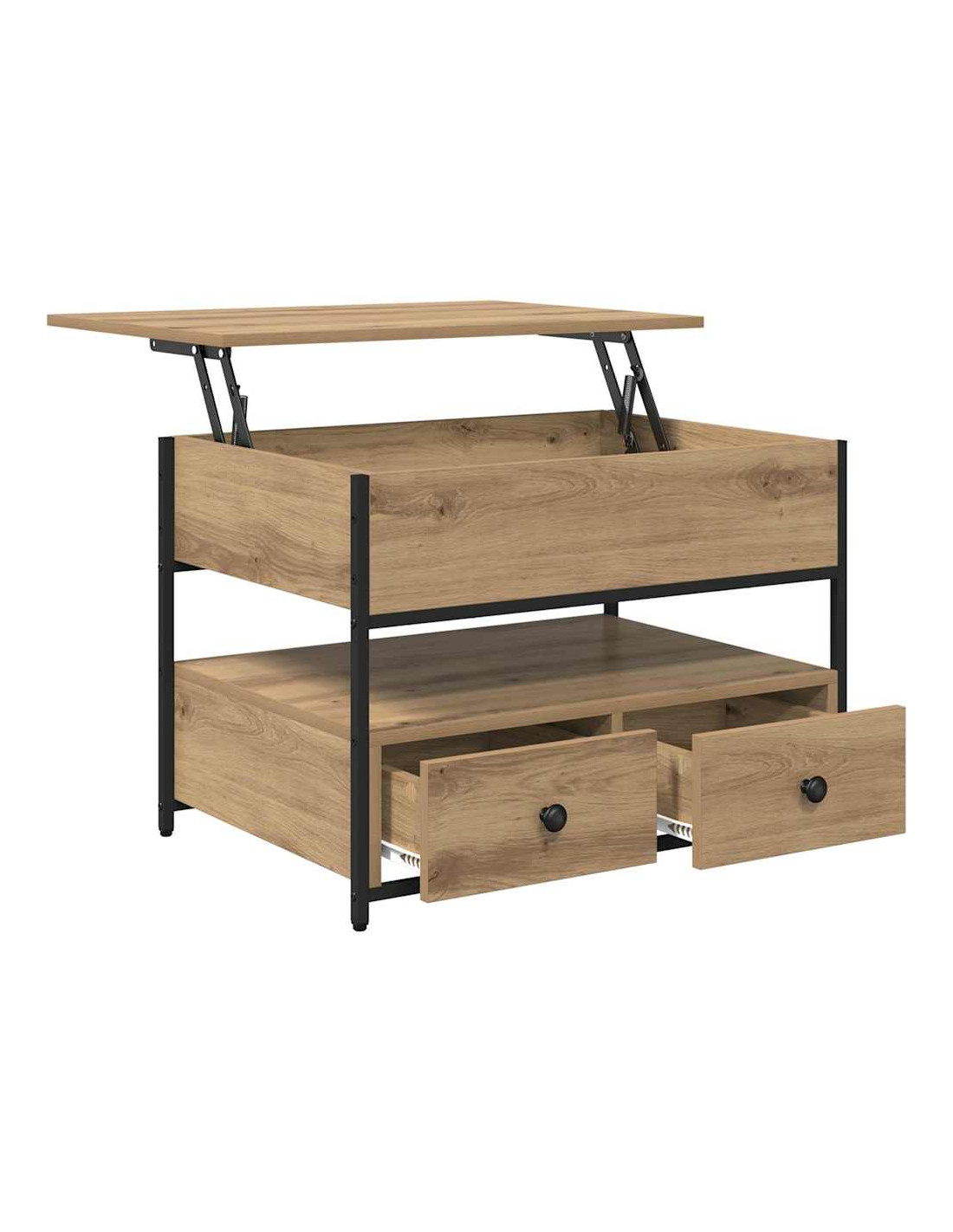 Questo tavolino da caffè moderno con top ribaltabile combina funzionalità e stile, diventando un pezzo centrale in qualsiasi soggiorno. La sua forma rettangolare elegante e il telaio in metallo verniciato, insieme a una superficie in legno ingegnerizzato liscia, creano un'atmosfera minimalista che si adatta perfettamente al decoro contemporaneo.