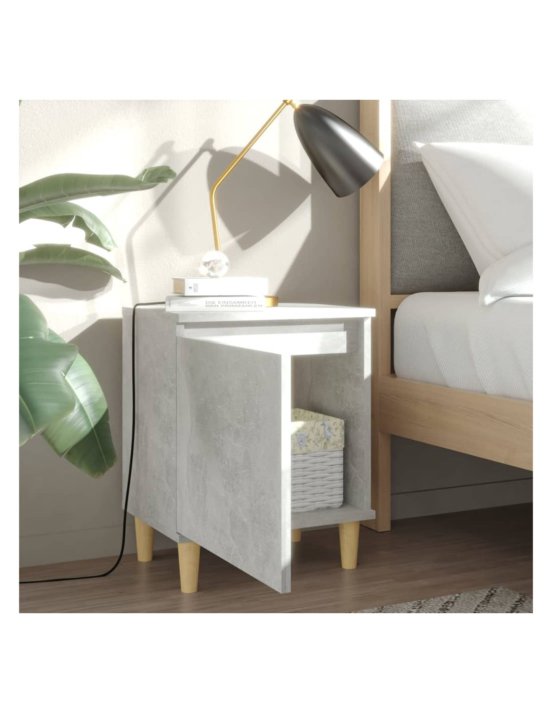 Il comodino con le gambe in legno è stabile e robusto. Può essere aperto a sinistra o a destra secondo le proprie preferenze. Inoltre, il comodino è dotato di uno scomparto che offre ampio spazio per tenere i vostri oggetti essenziali ben organizzati e a portata di mano. È facile da pulire con un panno umido.