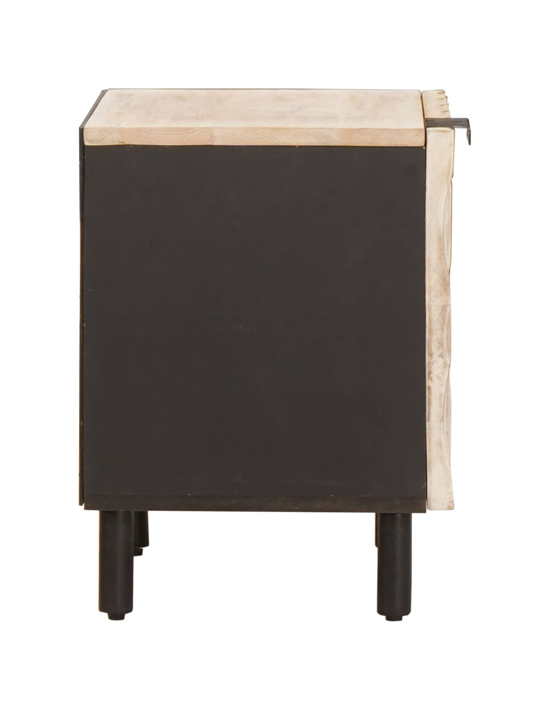 Questo elegante comodino in legno si integra benissimo in qualsiasi decorazione della camera da letto, con un design sofisticato che unisce stile e funzionalità. Realizzato in legno massello di mango, offre un calore accogliente e una disponibilità ampia per riporre gli oggetti quotidiani, rendendolo perfetto per camere da letto sia personali che condivise.