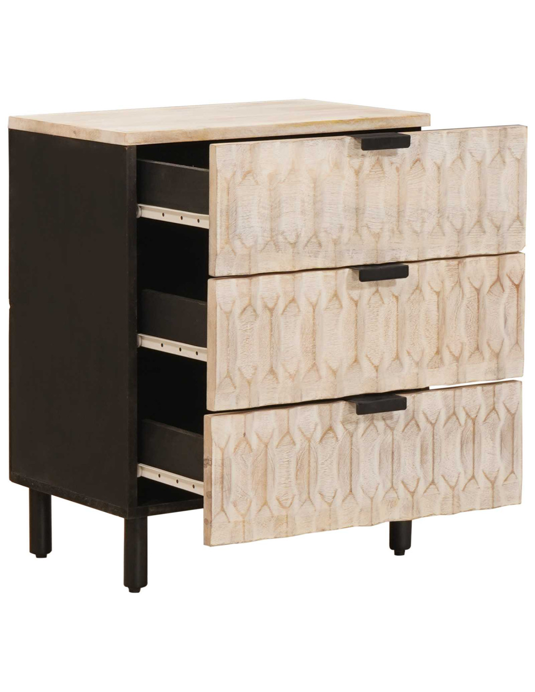 - Legno massello di mango: Questo comodino è realizzato in legno di mango, mostra la bellezza naturale e la resistenza dei mobili di alta qualità. La costruzione in legno massello garantisce durata aggiungendo stabilità e stile a qualsiasi camera da letto. Questa scelta robusta fornisce anche una base forte per tutto ciò che metti sopra.