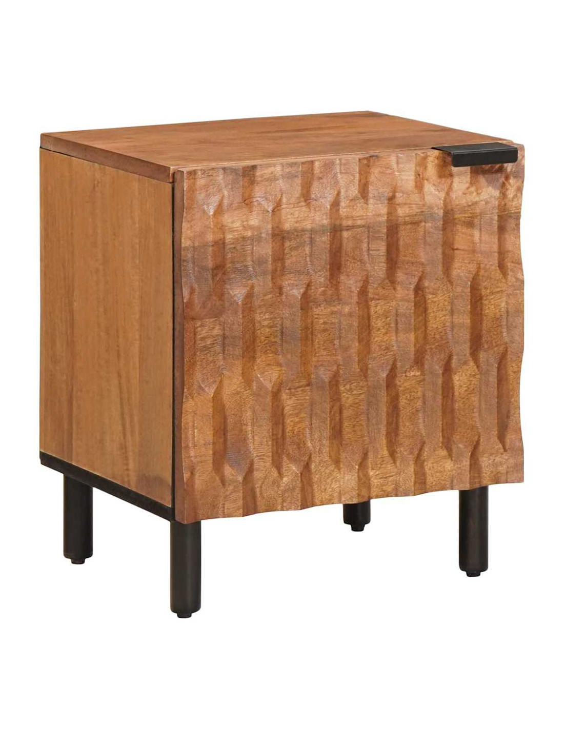 Questo elegante comodino in legno si integra benissimo in qualsiasi decorazione della camera da letto, con un design sofisticato che unisce stile e funzionalità. Realizzato in legno massello di mango, offre un calore accogliente e una disponibilità ampia per riporre gli oggetti quotidiani, rendendolo perfetto per camere da letto sia personali che condivise.