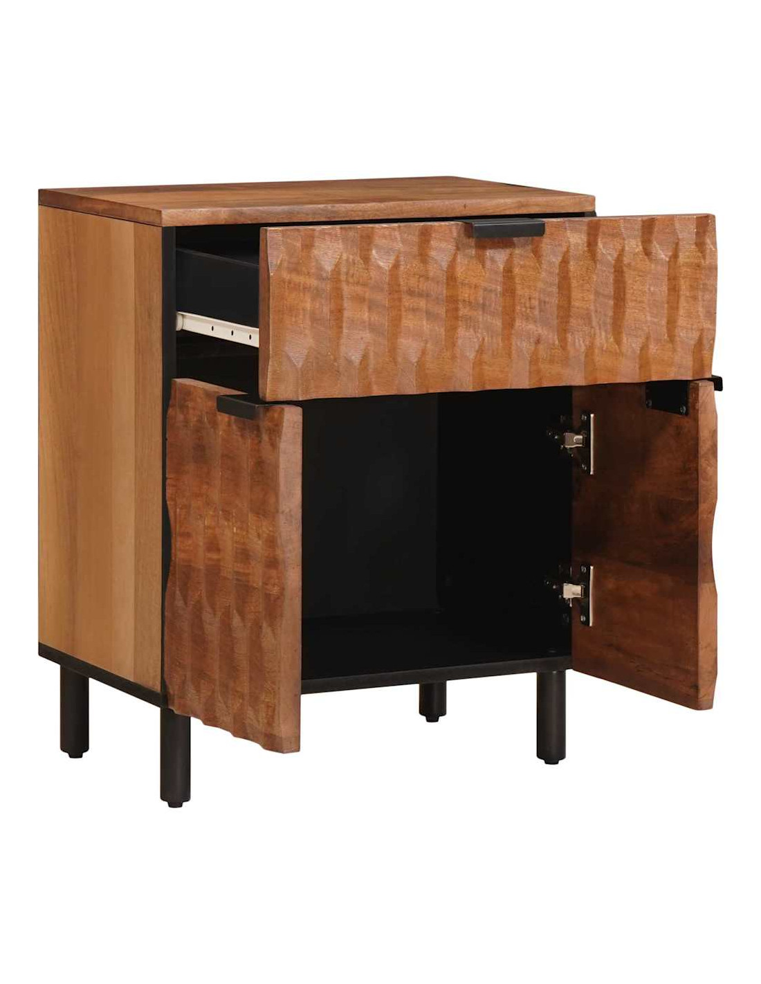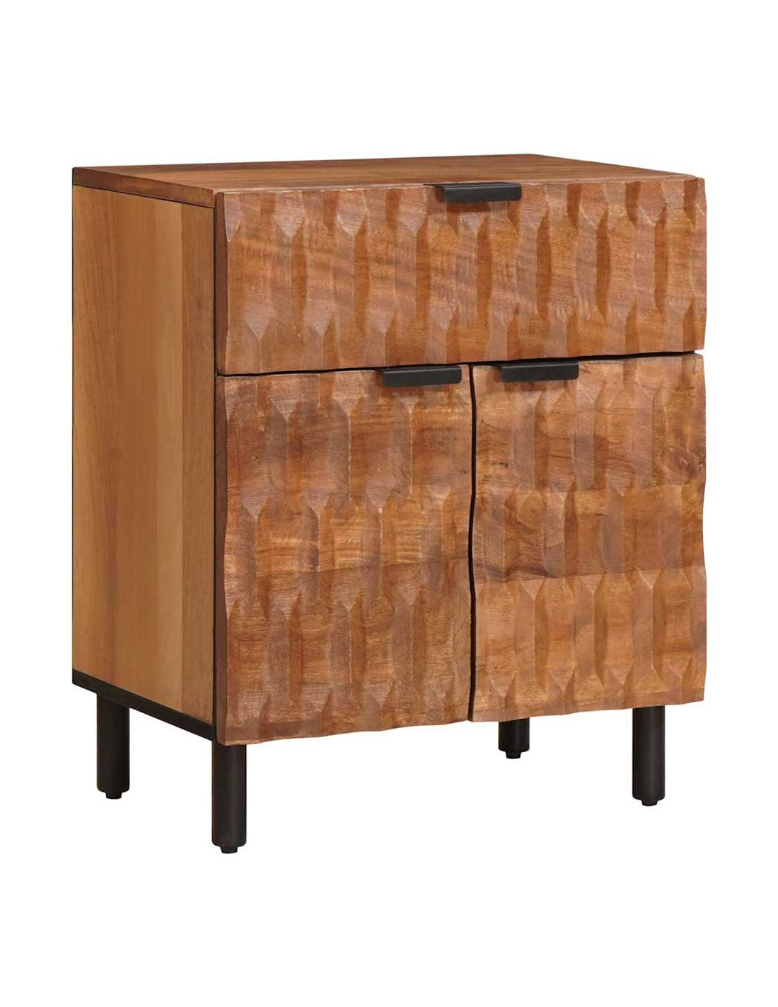 - Legno massello di mango: Questo comodino è fatto in legno massello di mango, una scelta solida e bella per il tuo arredamento. Le venature naturali rendono ogni pezzo unico. Non solo è resistente, ma porta calore e texture nella tua stanza.