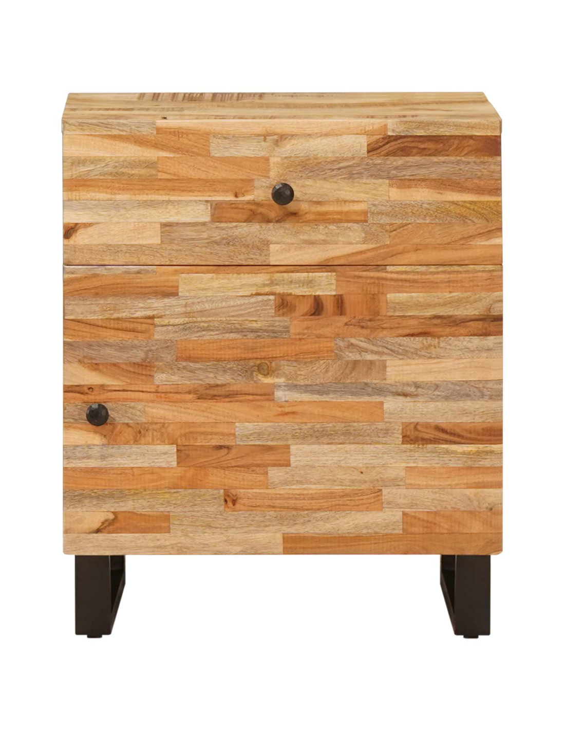 - materiali: Il comodino è in legno massello di mango, che offre tonalità marroni ricche e venature uniche. Questo materiale naturale garantisce durabilità e robustezza, anche con uso frequente.