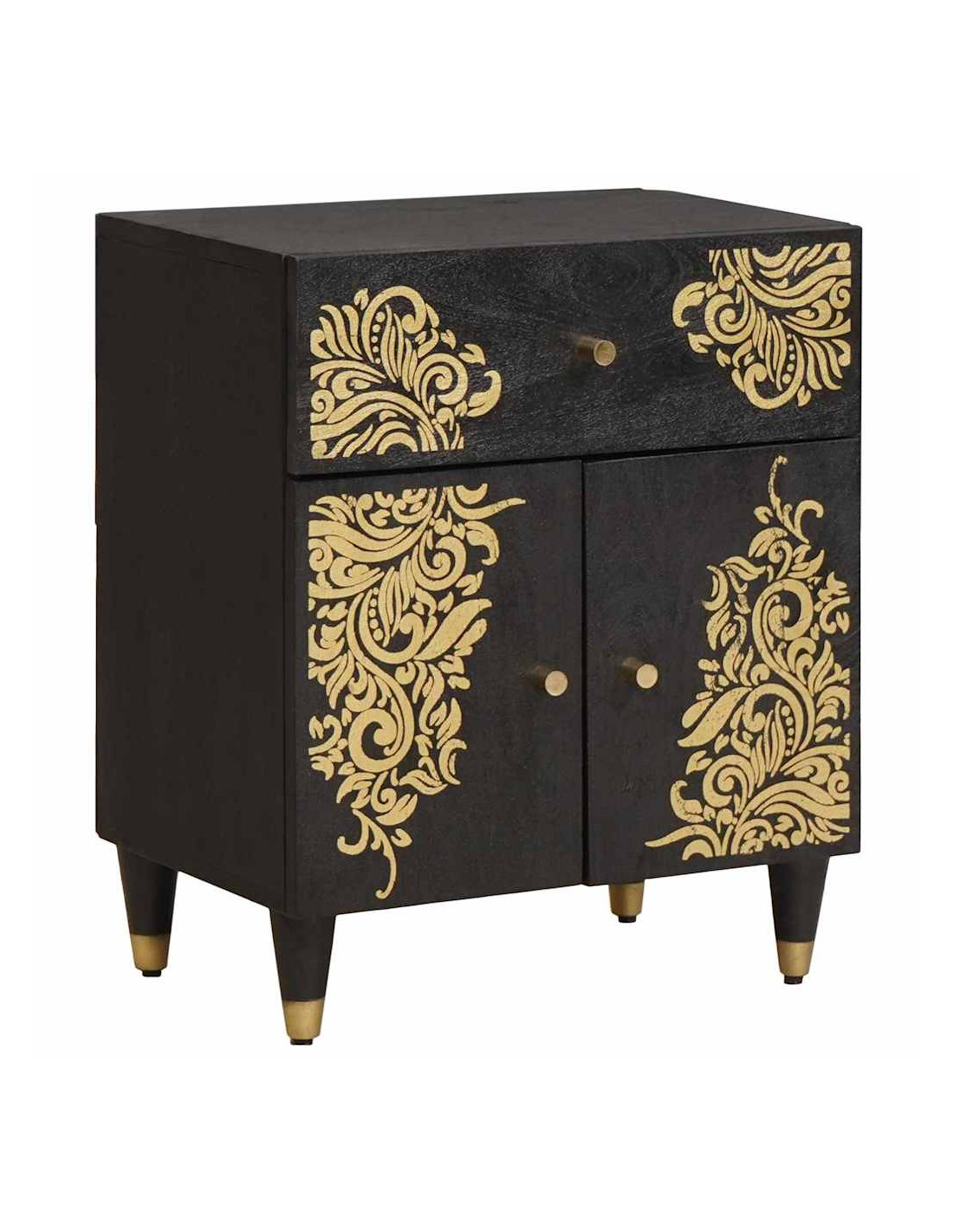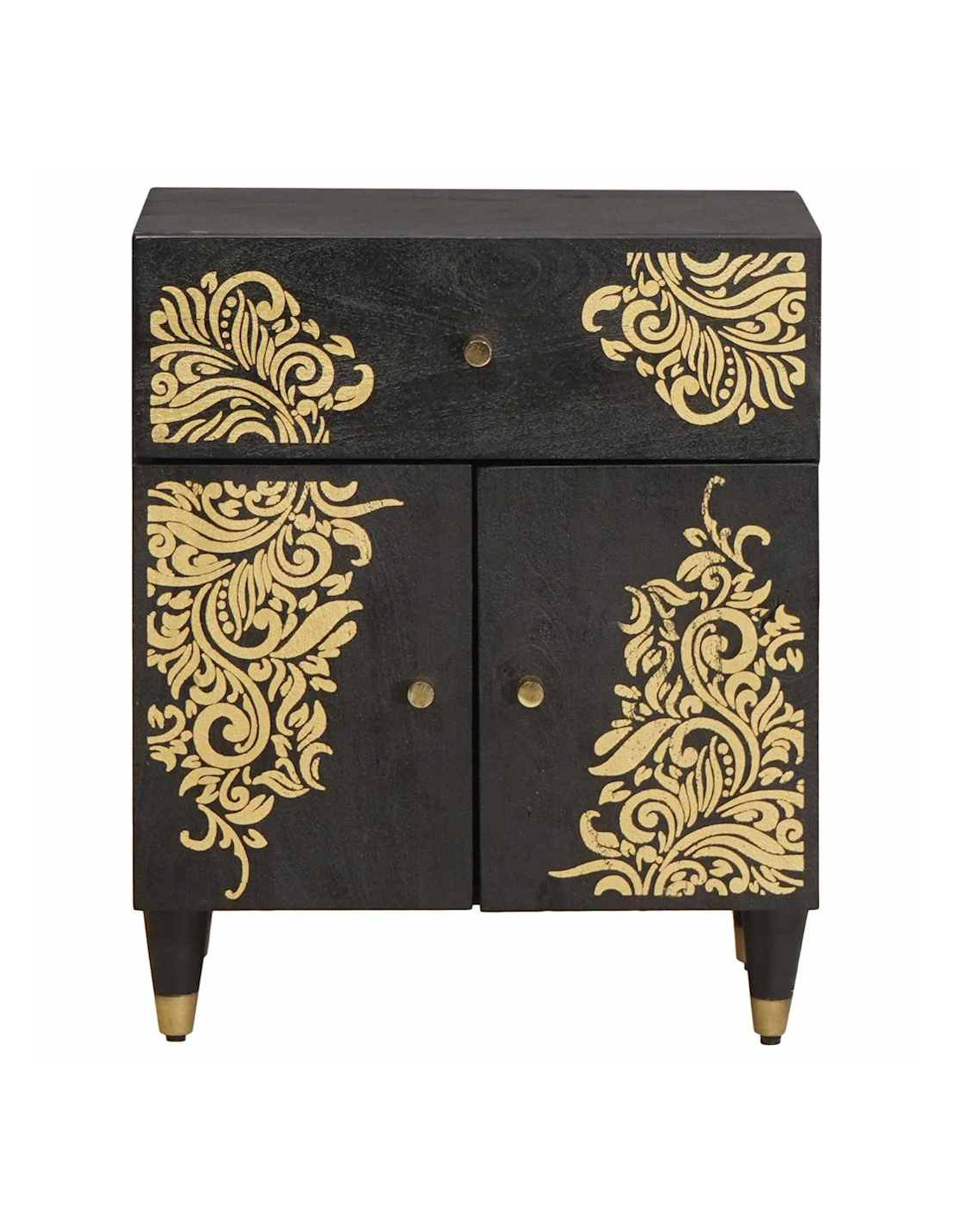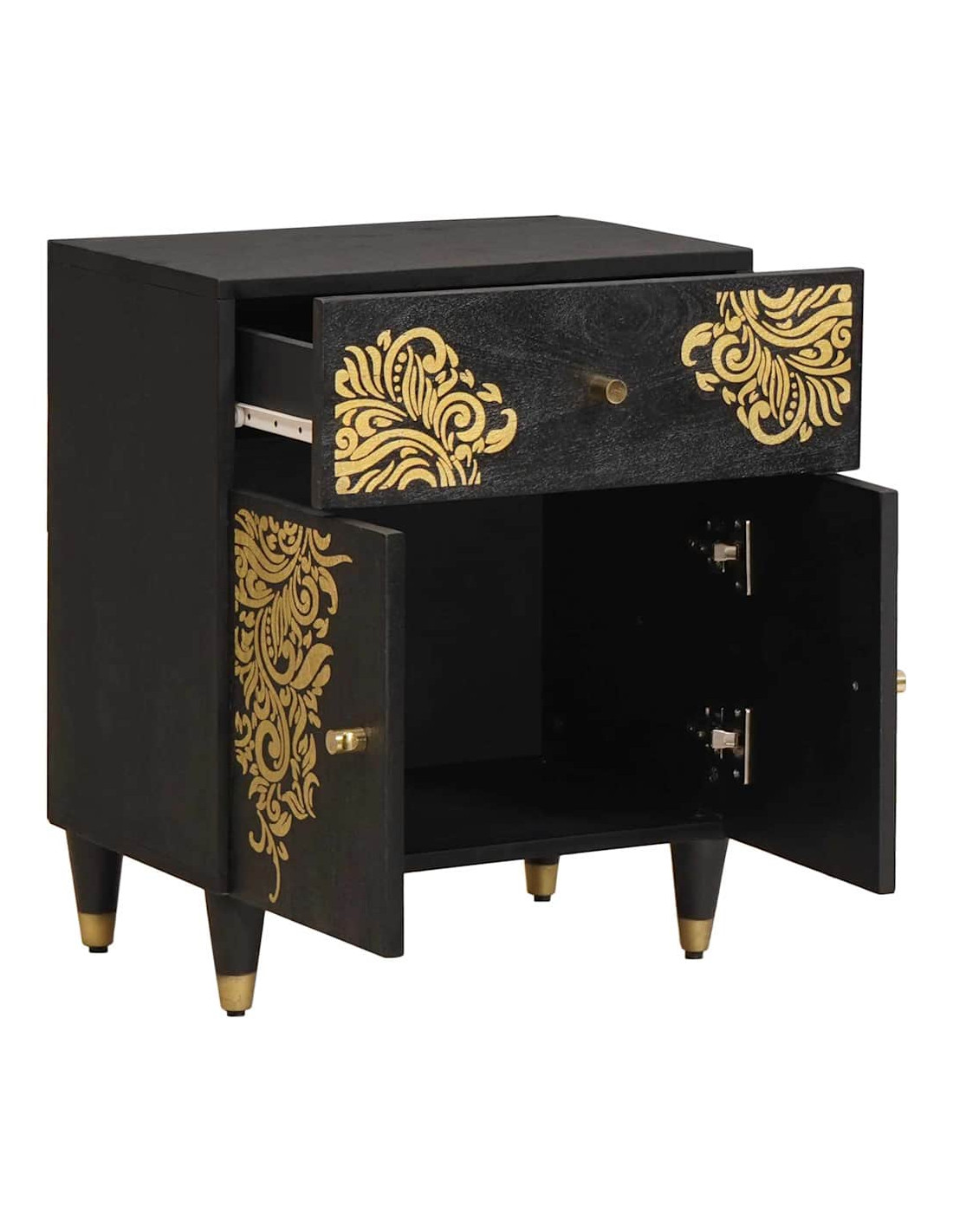 - Materiali premium: Il cabinet è fatto in legno massello di mango, noto per la sua resistenza e durabilità. Questo legno viene scelto per la sua solidità, garantendo che il comodino resista all'uso giornaliero mantenendosi in ottime condizioni, unendo bellezza e funzionalità.
