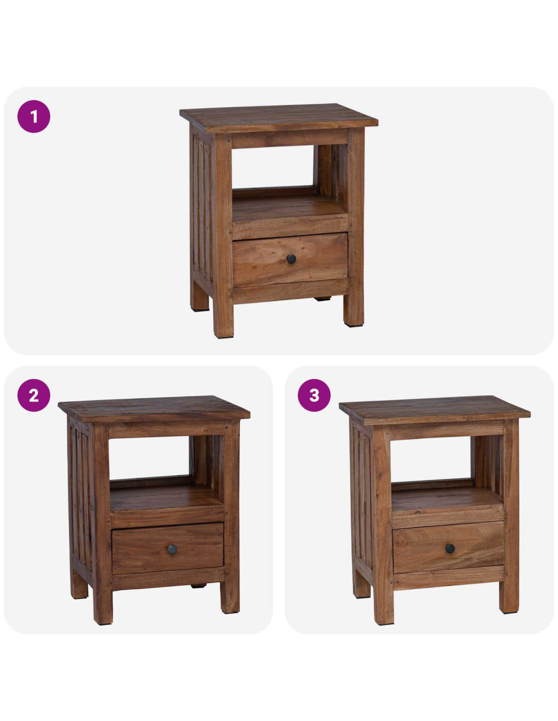 - Materiale di prima scelta Questo comodino è in legno massello di mogano, scelto per la sua resistenza e bellezza. Resterà bello nel tempo e porterà eleganza al tuo spazio.