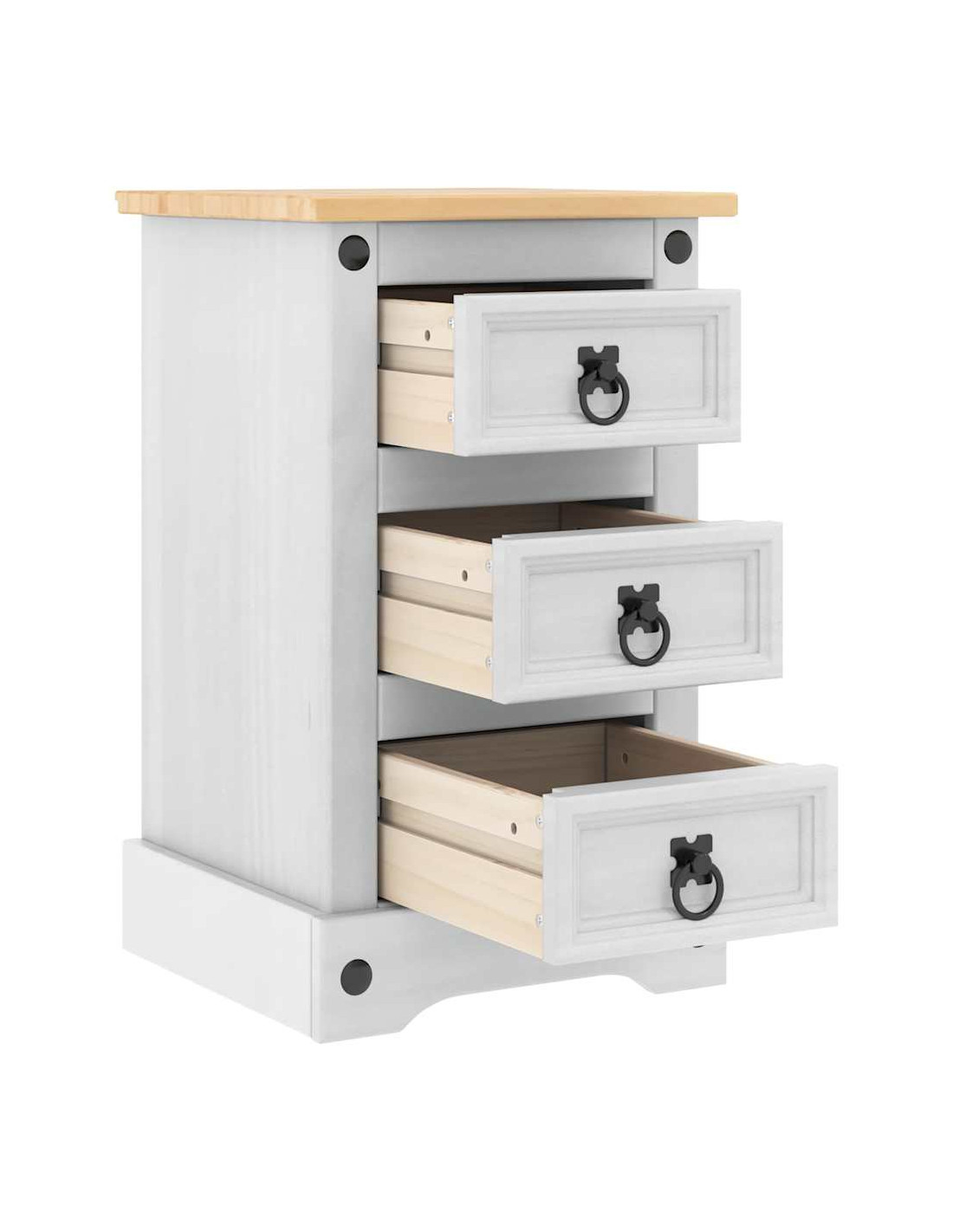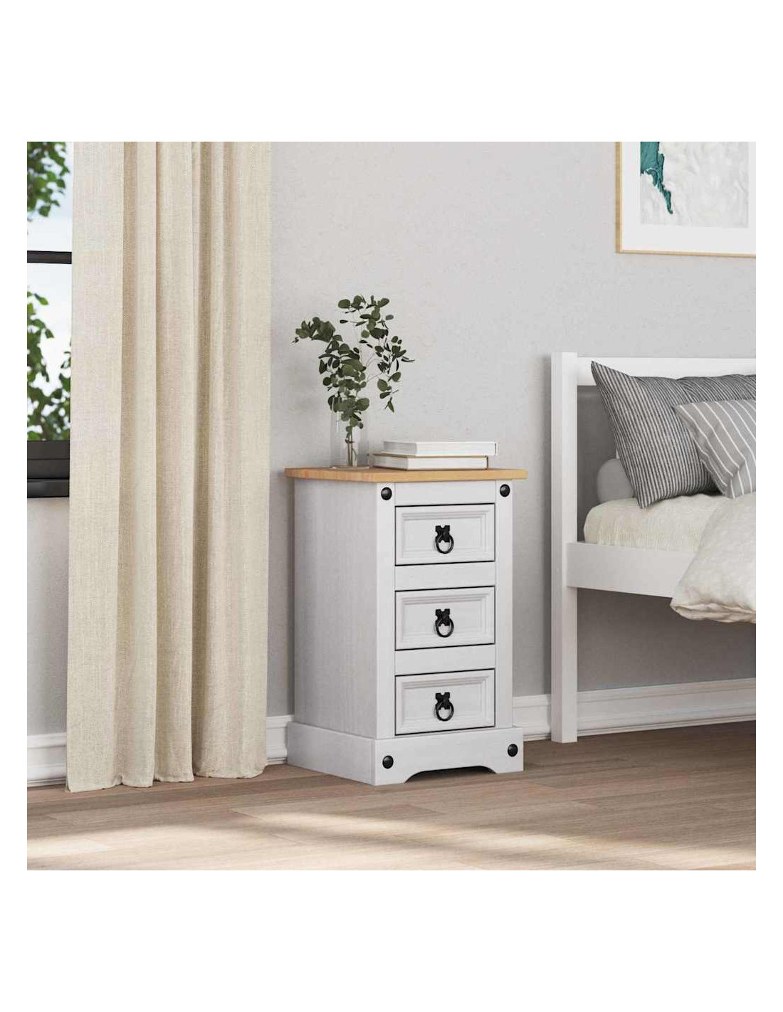 - Cassetti pratici: Equipaggiato con cassetti realizzati in legno ingegnerizzato, il comodino offre una soluzione di stoccaggio comoda e ordinata. Questi cassetti scivolano senza sforzo, perfetti per riporre libri, occhiali o gadget, mantenendo tutto pulito e in ordine.