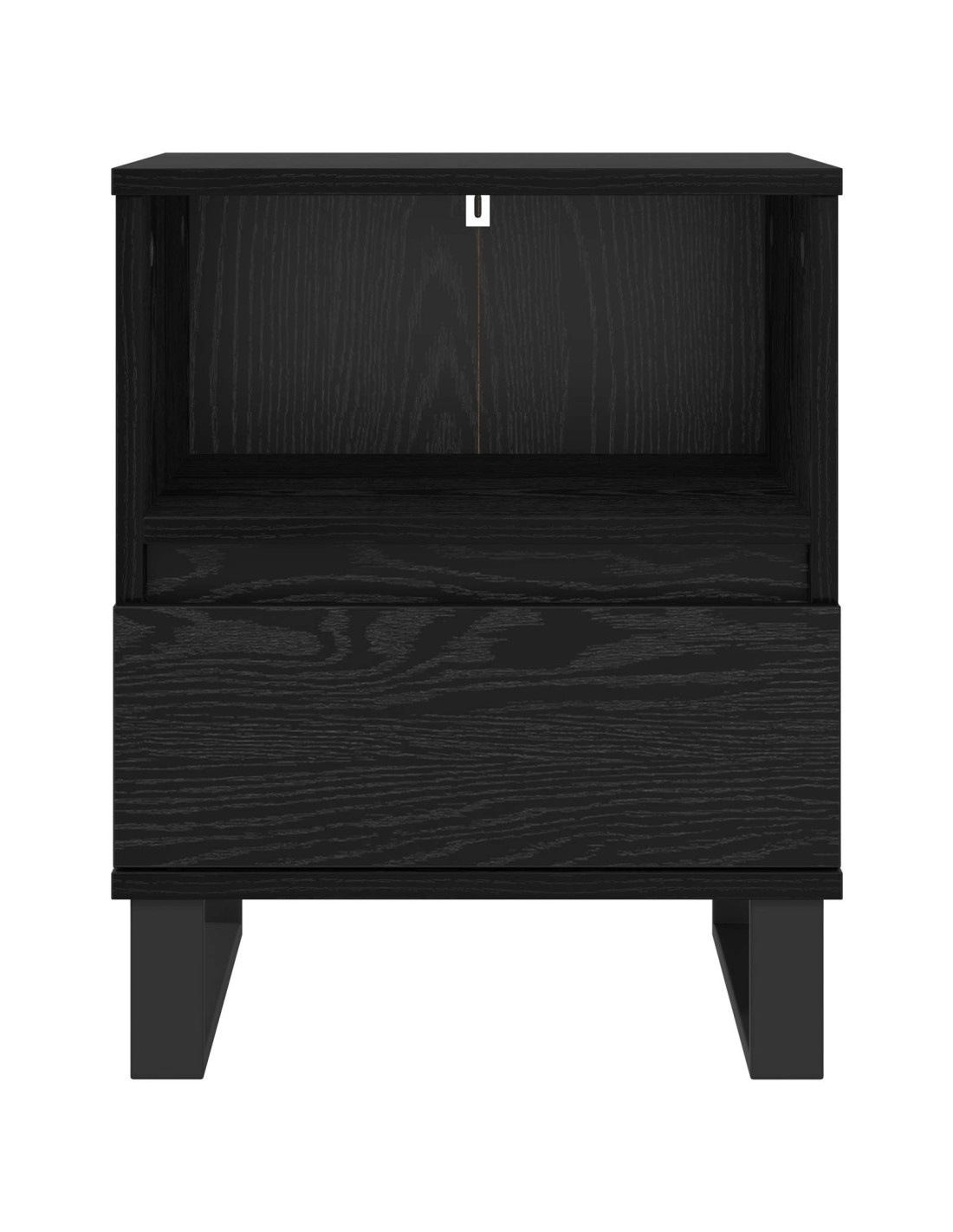 - Gambe in metallo solide: Sotto il comodino ci sono gambe quadrate in metallo, forti e dal look minimalista. Offrono una base stabile, mantenendo il comodino fermo vicino al letto.