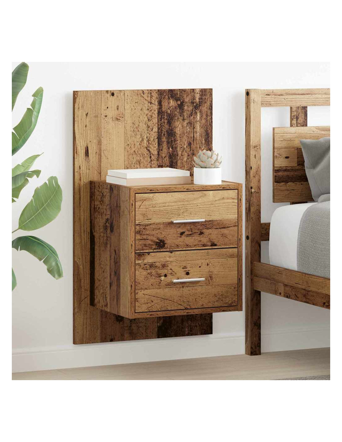 Questo comodino da parete è stato pensato per chi ama la funzionalità e uno stile rustico. È l'ideale per camere da letto con poco spazio, grazie al suo design montato a parete che è sia pratico che elegante. Ha tanto spazio per riporre sveglie, lampade e libri, diventando così un'ottima soluzione per la tua routine notturna.