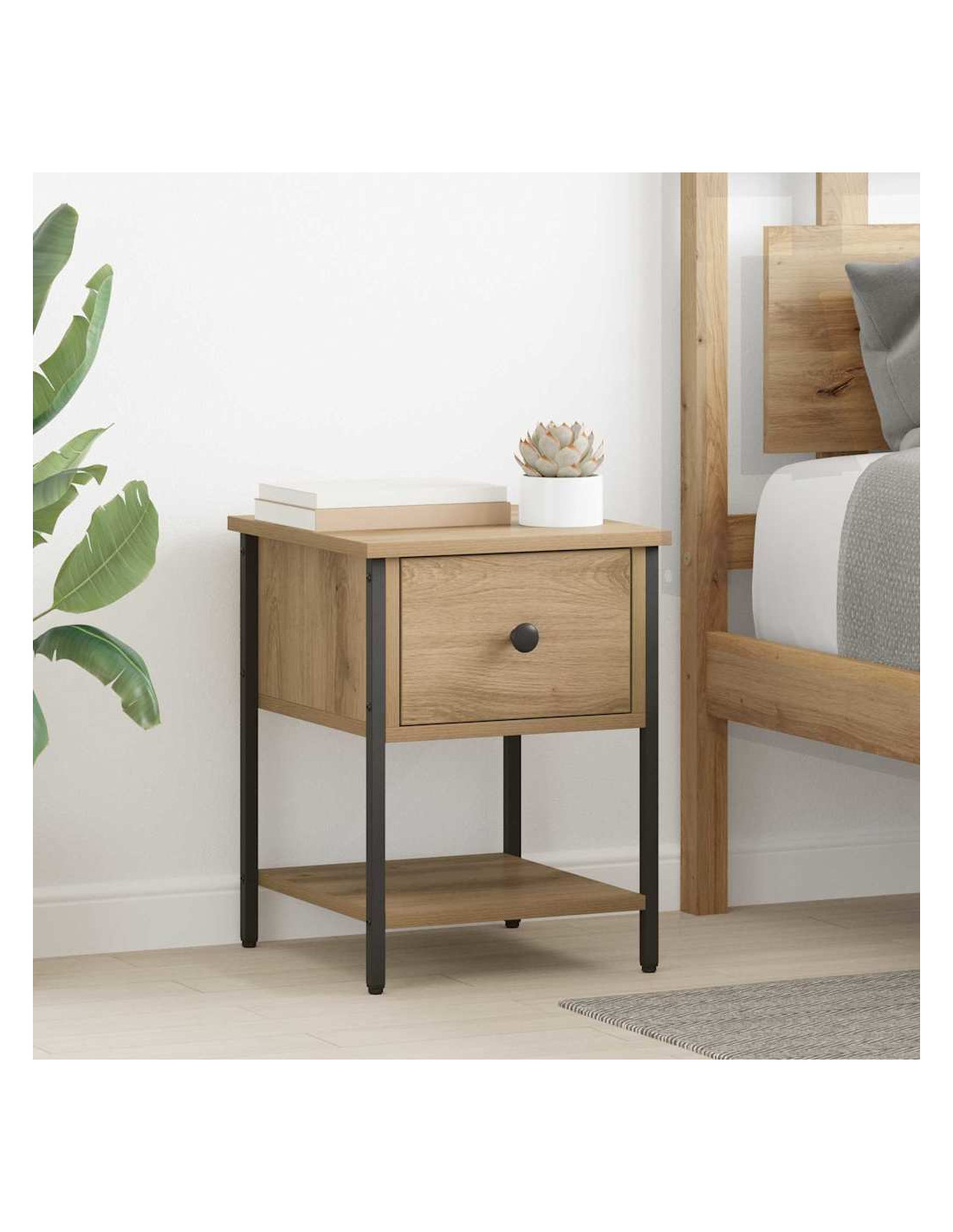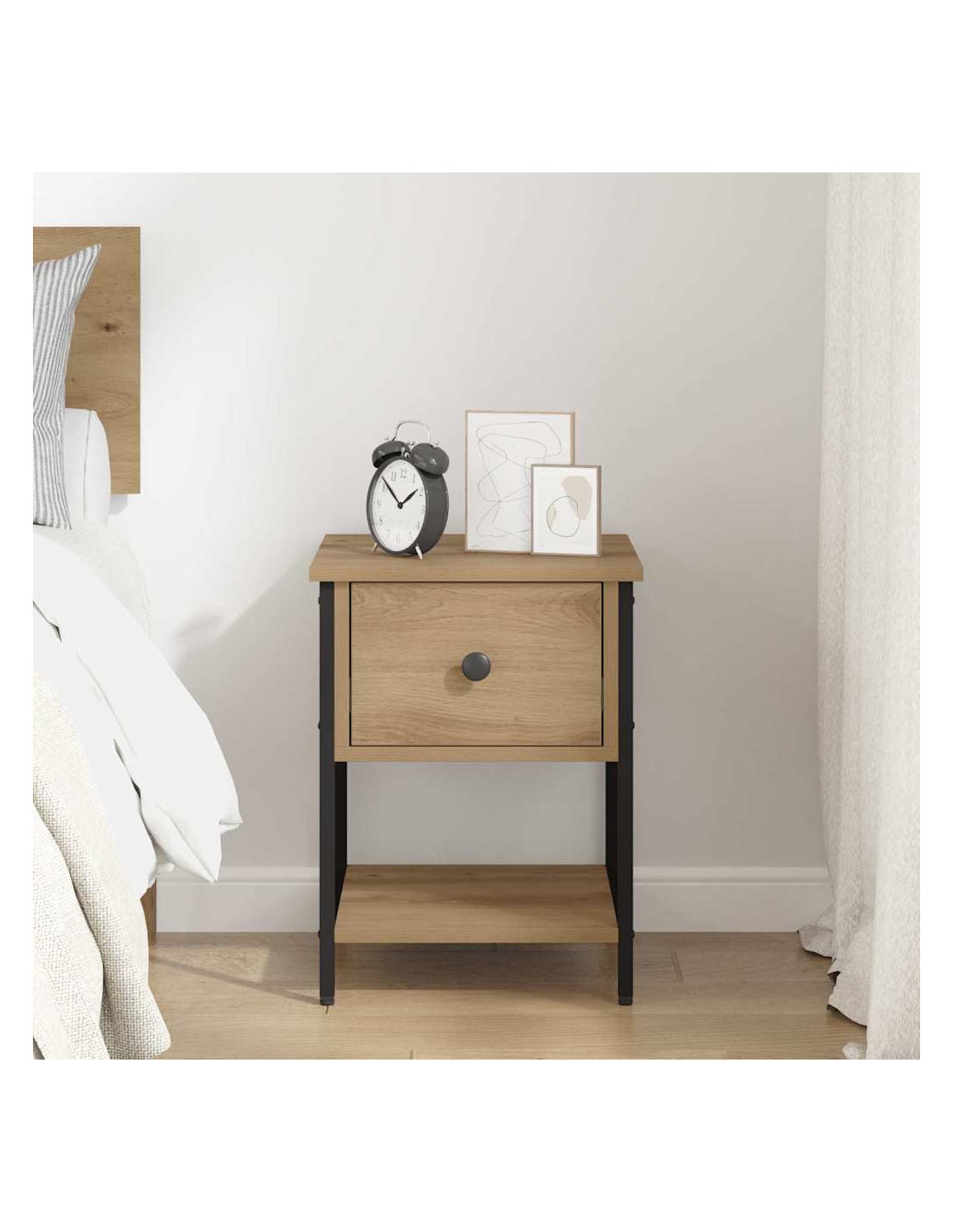 Questo comodino è l’emblema dell’eleganza moderna grazie al suo design minimalista. Perfetto accanto al letto, non solo supporta i tuoi oggetti quotidiani ma rappresenta anche una vera e propria dichiarazione stilistica. Le sue linee nette e la struttura in legno ingegnerizzato migliorano l’atmosfera della camera, contribuendo a creare un ambiente ordinato e di stile.