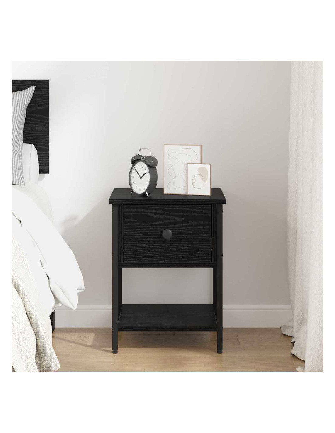 Questo comodino è l’emblema dell’eleganza moderna grazie al suo design minimalista. Perfetto accanto al letto, non solo supporta i tuoi oggetti quotidiani ma rappresenta anche una vera e propria dichiarazione stilistica. Le sue linee nette e la struttura in legno ingegnerizzato migliorano l’atmosfera della camera, contribuendo a creare un ambiente ordinato e di stile.
