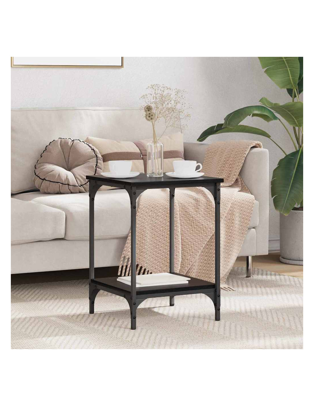 - Scaffali industriali: Questo tavolino ha scaffali robusti in metallo e legno ingegnerizzato, perfetti per aggiungere un tocco rustico alla tua casa. Gli scaffali offrono tanto spazio per libri e decorazioni, rendendolo ideale per chi ama lo stile industriale.