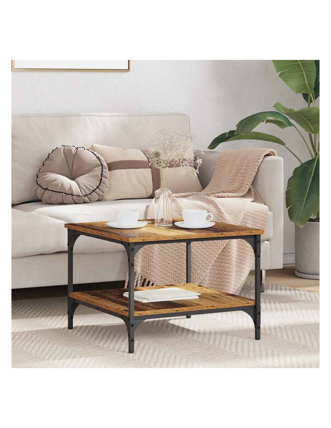 - Scaffali industriali: Questo tavolino ha scaffali robusti in metallo e legno ingegnerizzato, perfetti per aggiungere un tocco rustico alla tua casa. Gli scaffali offrono tanto spazio per libri e decorazioni, rendendolo ideale per chi ama lo stile industriale.
