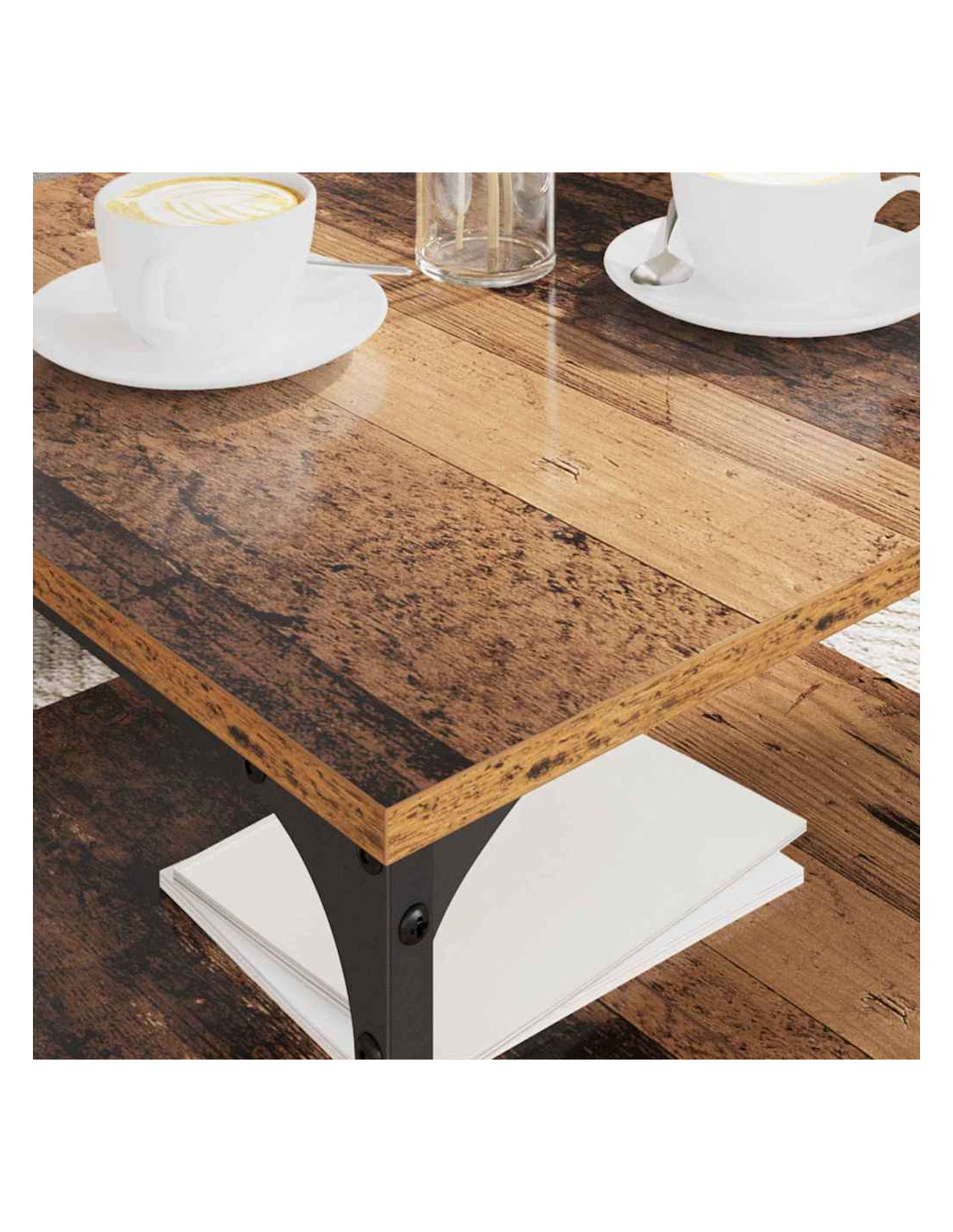 Questo tavolino da caffè industriale è il pezzo perfetto per il tuo soggiorno. Combina stile e funzionalità. La forma rettangolare offre una superficie liscia ideale per appoggiare bevande e decorazioni. Con il suo design urbano, porta un fascino solido e risolve le tue esigenze di stoccaggio.