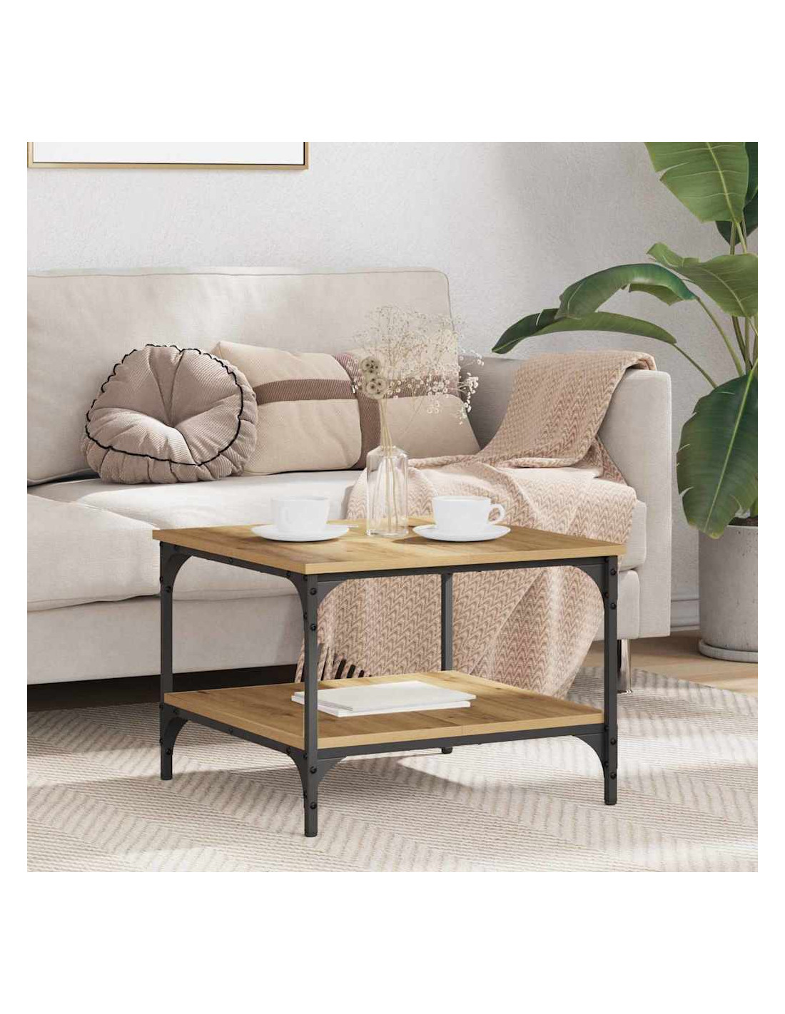 - Scaffali industriali: Questo tavolino ha scaffali robusti in metallo e legno ingegnerizzato, perfetti per aggiungere un tocco rustico alla tua casa. Gli scaffali offrono tanto spazio per libri e decorazioni, rendendolo ideale per chi ama lo stile industriale.
