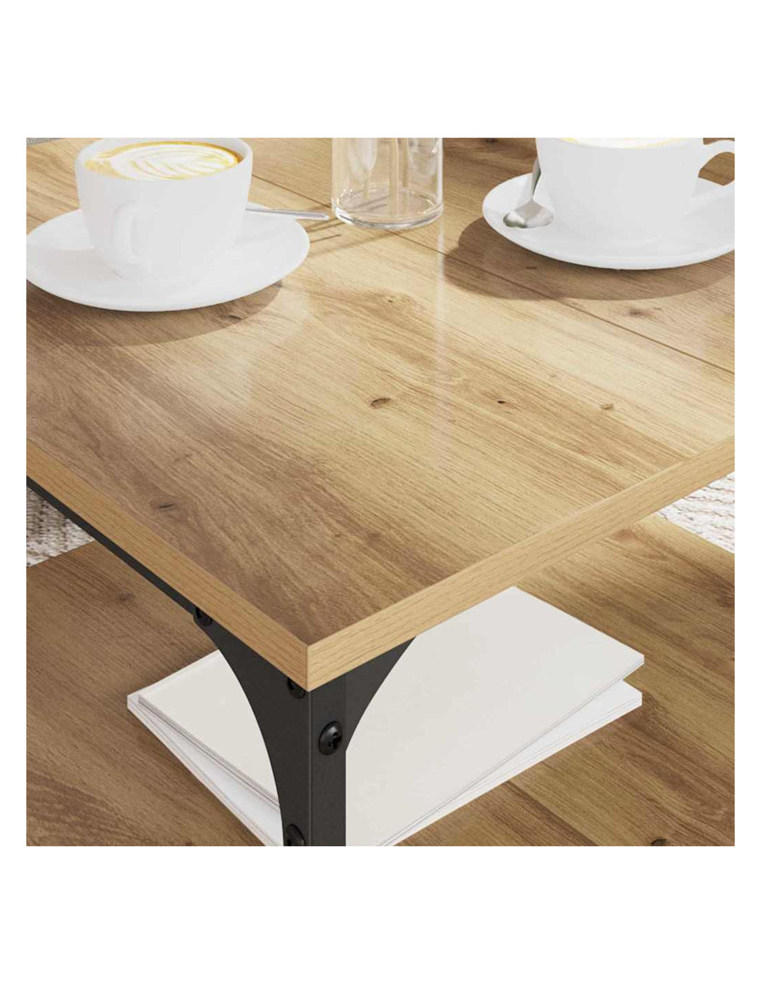 - Superficie in legno ingegnerizzato: La superficie elegante in legno ingegnerizzato è tanto bella quanto funzionale. Resistente all'abrasione, mantiene la sua bellezza nel tempo. Che tu stia ricevendo amici o semplicemente sorseggiando un caffè, questa superficie migliora ogni momento.