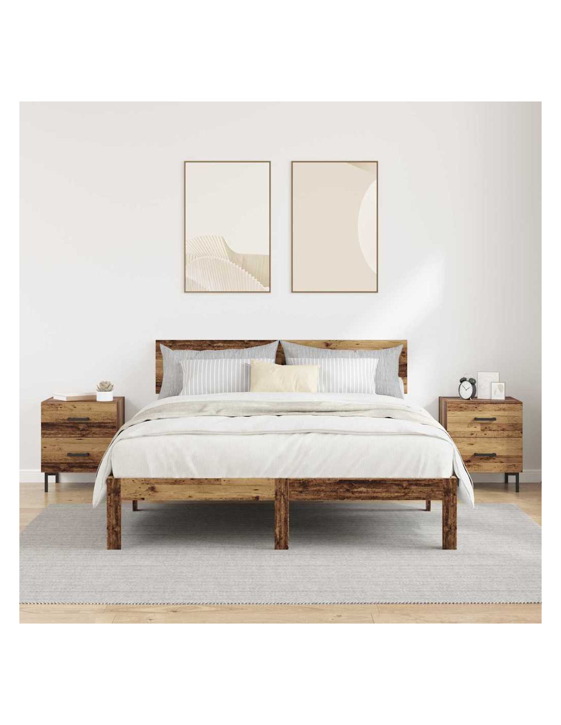 - Materiali: Costruito in legno ingegnerizzato, questo comodino ha una finitura robusta e chic. Questo materiale è stato scelto per la sua resistenza, offrendo una costruzione durevole che regge l'uso quotidiano mantenendo un aspetto accattivante. La grana uniforme del legno ingegnerizzato si sposa bene con lo stile rustico.