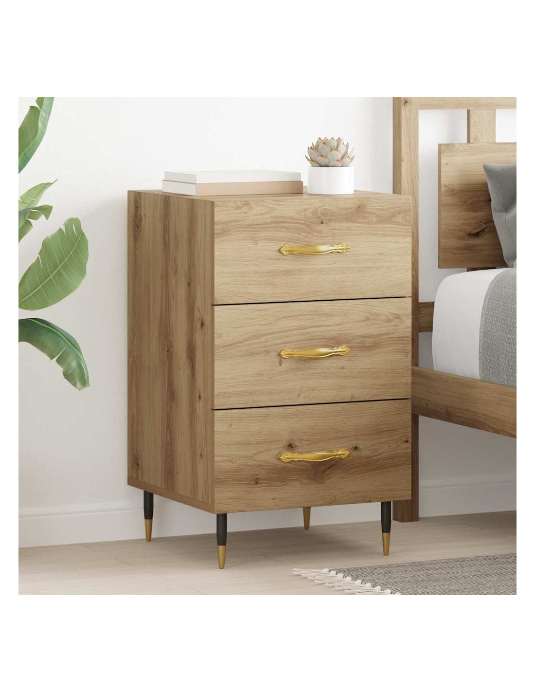 - Cassetto Utilitario: Ogni comodino ha un design di cassetto tradizionale, facilitando l'archiviazione di oggetti necessari. Aiuta a mantenere tutto in ordine.