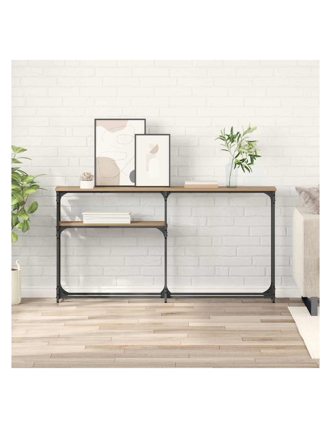 Questo tavolo consolle industriale è perfetto per chi cerca un tocco di classe nel soggiorno. Con una struttura metallica robusta e superfici in legno ingegnerizzato, arricchisce il tuo ambiente con utilità e stile. Il design snello si adatta a spazi ristretti, mentre i materiali conferiscono un aspetto urbano che matcha bene con diversi arredi.