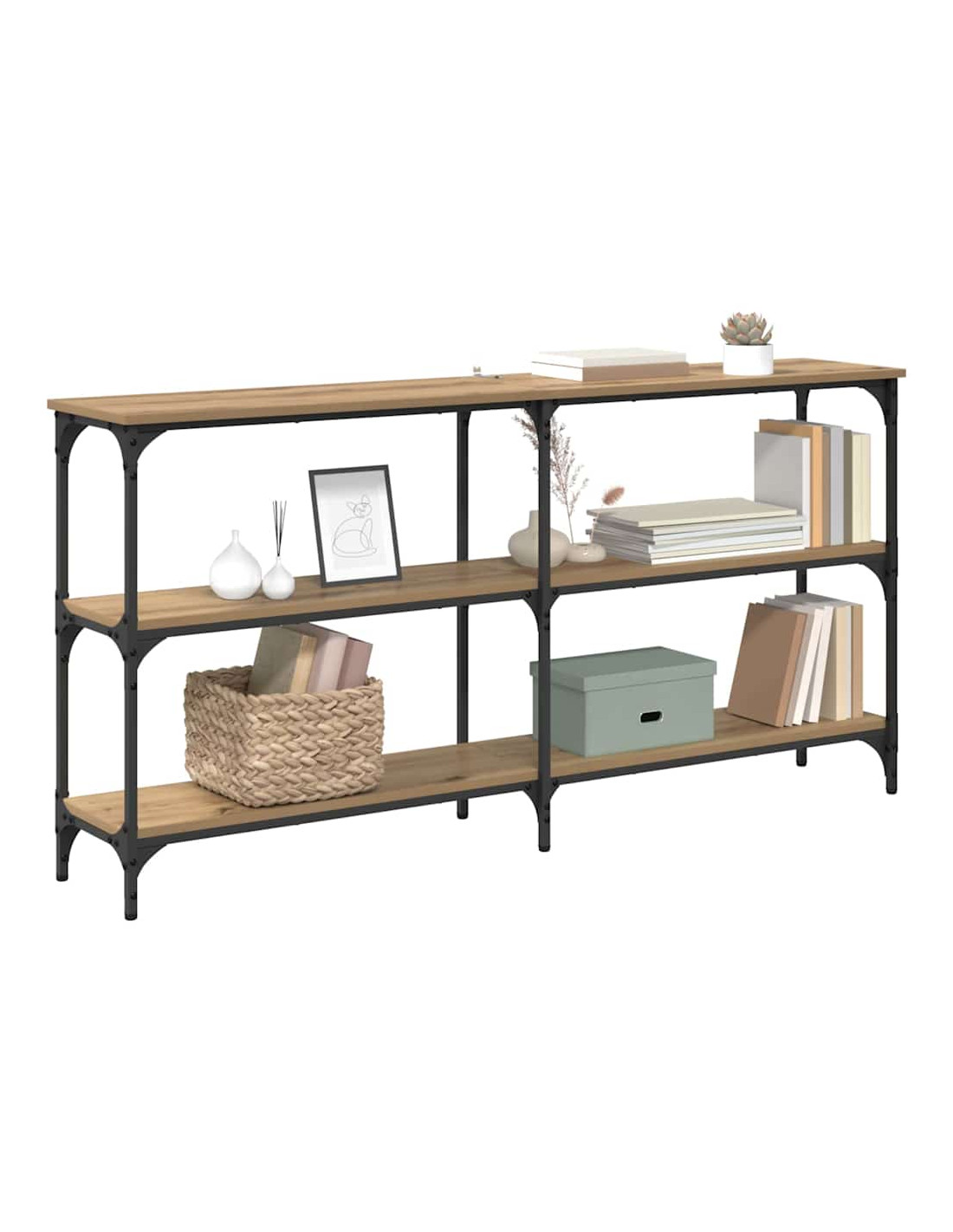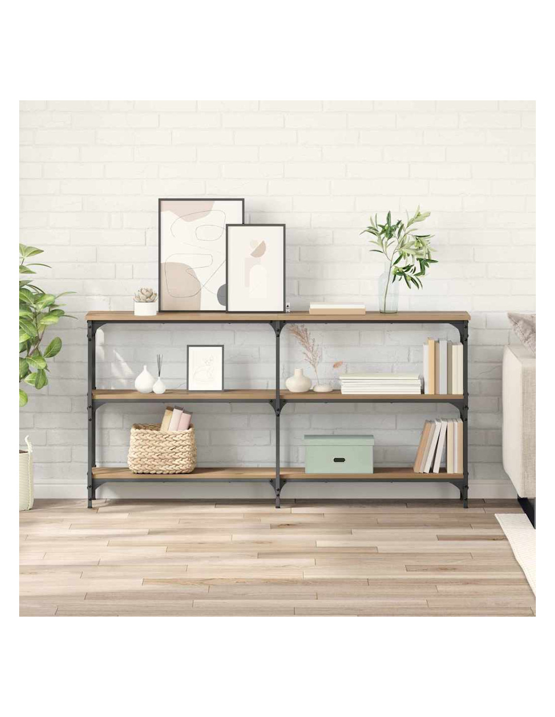Questo tavolo consolle industriale è un pezzo fantastico per case contemporanee. Ha una forma rettangolare che offre funzioni sia estetiche che pratiche. Il suo design industriale, ispirato ai loft urbani, è abbinato alla praticità per le case moderne. Che venga usato in un ingresso, come divisore di stanze o sotto una TV, arricchisce l'atmosfera e la funzionalità di ogni casa. È l'aggiunta perfetta per chi ama un design sofisticato e pratico.
