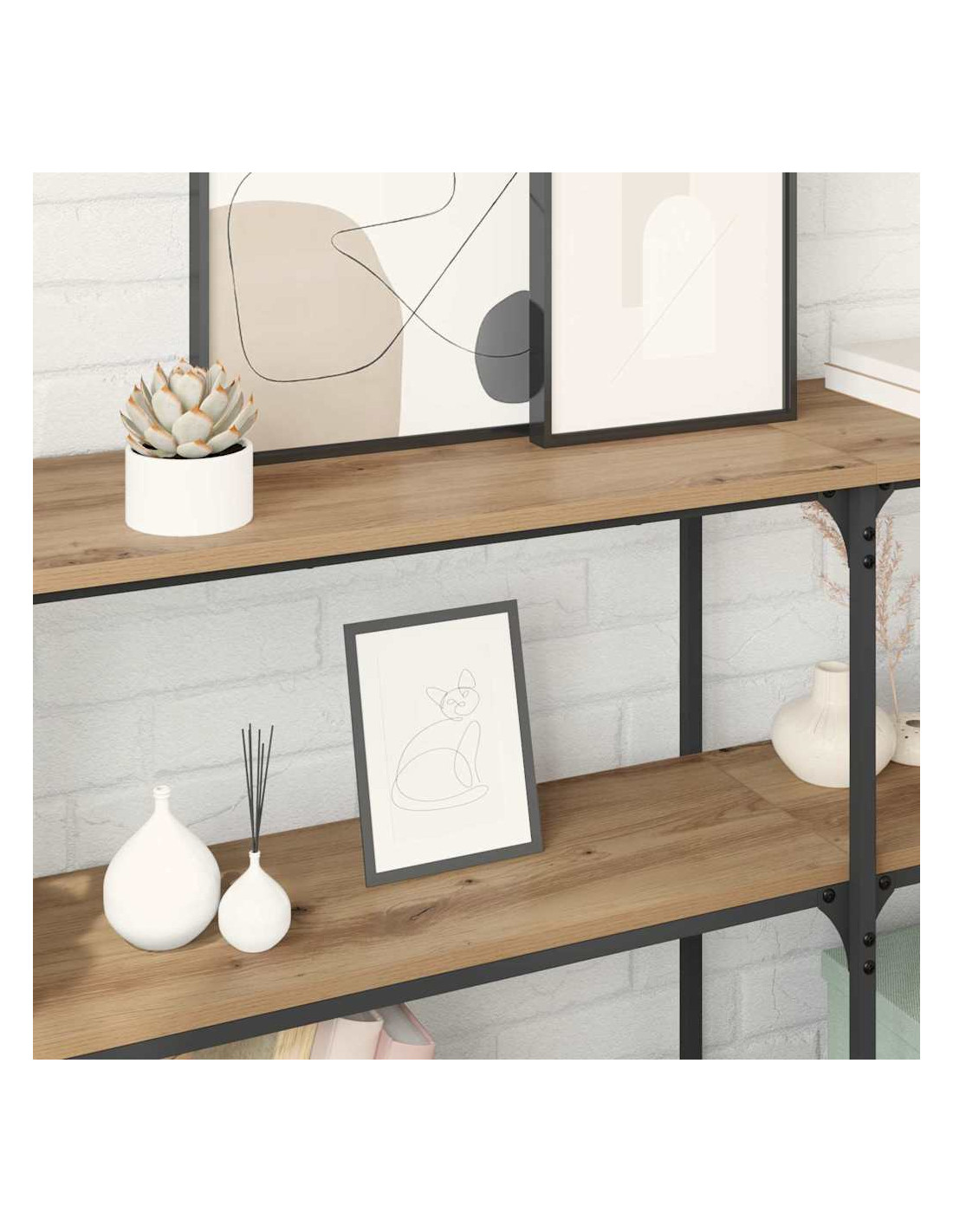 - Ripiani per pannelli: Con ripiani ampi, il tavolo offre tanto spazio per mostrare oggetti decorativi o per riporre oggetti essenziali. Puoi personalizzare l’esposizione in base a ciò che preferisci, senza perdere di vista lo stile. Che siano vasi, libri o attrezzature multimediali, le possibilità sono infinite.