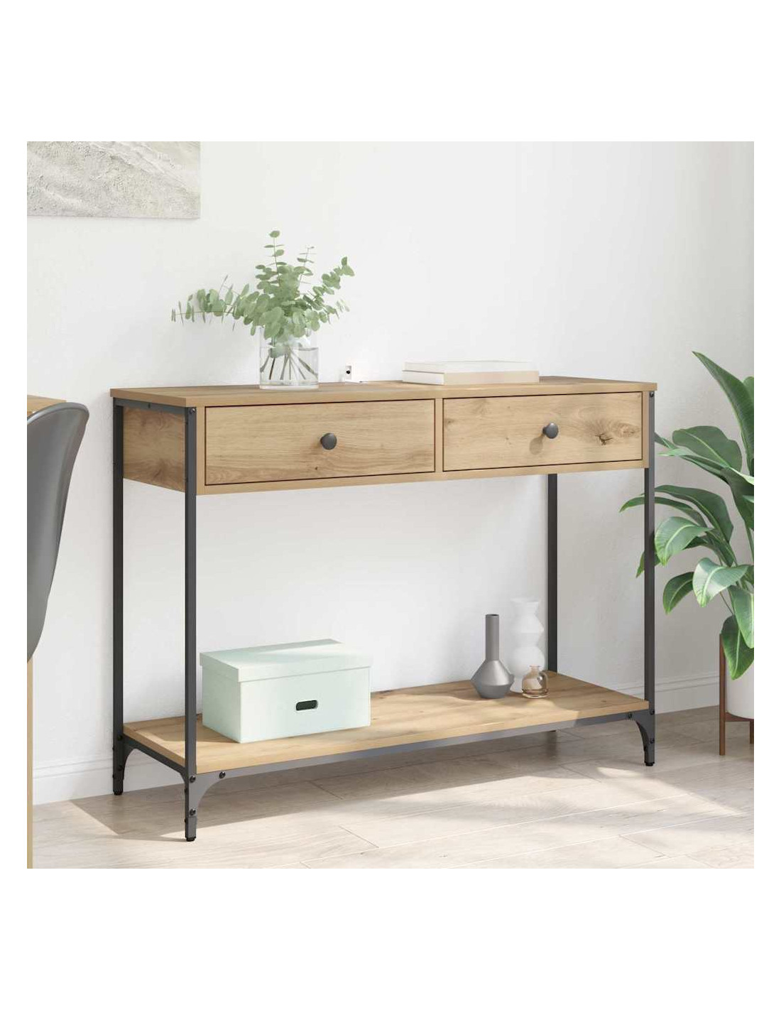 - Aestetica industriale: Questo tavolo consolle cattura lo stile industriale con la sua superficie in legno ingegnerizzato testurizzato, che richiama il fascino urbano grezzo. Con un telaio metallico e robuste gambe in acciaio, aggiunge un tocco chic da magazzino a qualsiasi stanza, diventando un punto di riferimento nel soggiorno moderno. La combinazione di metallo e legno ingegnerizzato trova un equilibrio tra robustezza ed eleganza moderna.