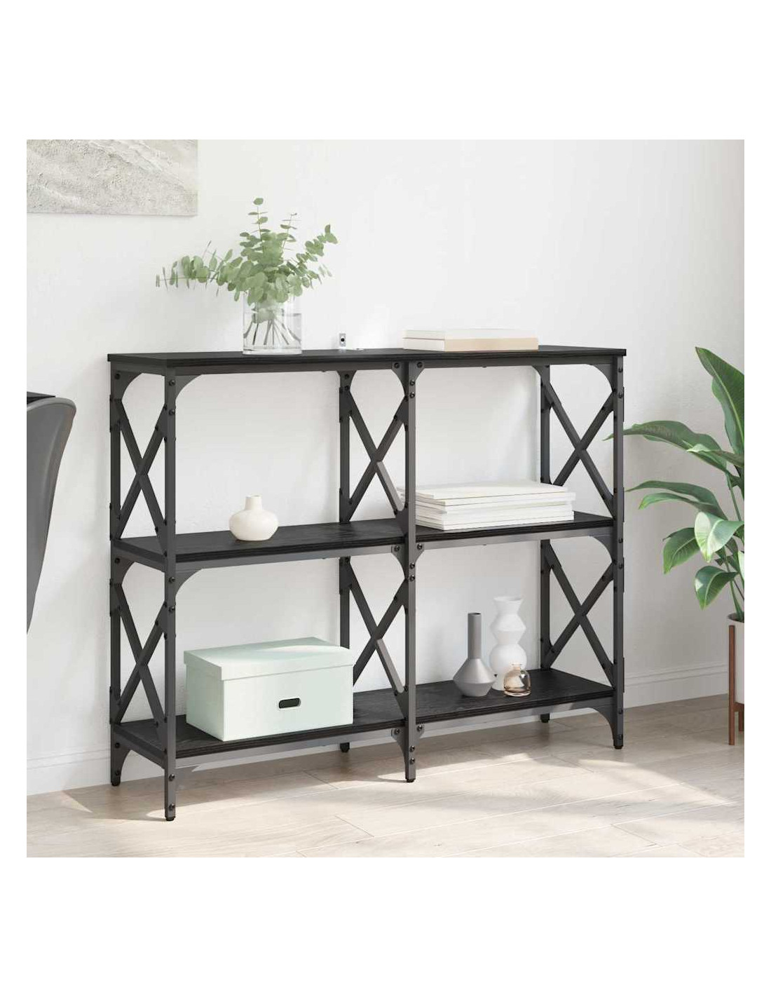 Questo tavolo consolle moderno è un'aggiunta chic e utile alla tua casa. Con le sue linee pulite e il design minimalista, si integra perfettamente negli spazi contemporanei, rendendolo perfetto per foyer o aree living. La superficie in legno ingegnerizzato è raffinata e si presta bene a decorazioni che arricchiscono il tuo arredamento. Versatilità e praticità si uniscono, rendendolo ideale per chi cerca di combinare funzionalità e stile.